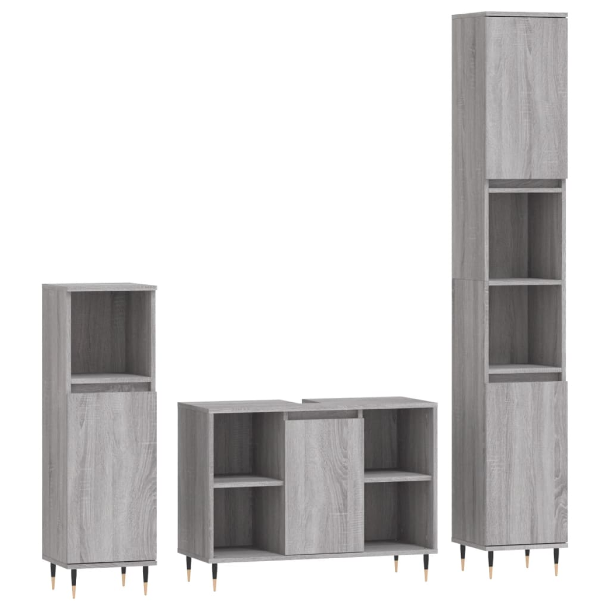 This trendy bathroom furniture set is meant to be an excellent addition to your bathroom, giving it a tidy and striking appearance! Durable material: The engineered wood is of exceptional quality with smooth surface and also features strength, stability and resistance to moisture. Iron feet: The iron feet add a modern and calm style to your interior while ensuring stability.Ample storage space: The bathroom cabinet provides various storage options and spacious space for you to store items in your bathroom. Practical design: The top of the bathroom sink cabinet is ideal for placing the sink. Warning:To prevent it being overturned, this product must be used with the provided wall attachment device. Good to know:The sink is not included in the delivery.Screws and plugs for inside the wall are not included. We advise to find and use screws and plugs suitable specifically for your walls. If you're not sure, you can consult with a professional. Please read and follow each step of the instructions.