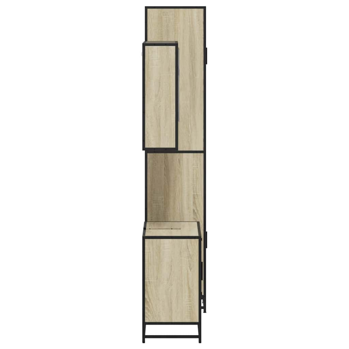 This stylish bathroom furniture set is an excellent addition to your bathroom, giving it a tidy and striking appearance! Stable and durable material: Engineered wood is a durable and stable material with a smooth surface that is resistant to moisture, warping, and splitting, making it a reliable choice for a variety of projects.Stable and long-lasting frame: The metal frame of the bathroom vanity unit enhances your interior with an industrial style and provides exceptional durability, stability and resistance to corrosion.Ample storage space: The bath cabinet offers ample space to easily accommodate your essential toiletries and bath items such as soaps, shampoo, toothpaste, etc.Clear image: The glass mirror face provides a fine and non-distorted reflection, so it is suitable for making up, shaving or checking the suit before going out.Easy to maintain: Thanks to its smooth surface, the bathroom cabinet is easy to clean with a damp cloth and requires less maintenance. Good to know:Screws and plugs for inside the wall are not included. We advise to find and use screws and plugs suitable specifically for your walls. If you're not sure, you can consult with a professional. Please read and follow each step of the instructions. Warning:To prevent it from tipping over, this product must be used with the provided wall attachment device.