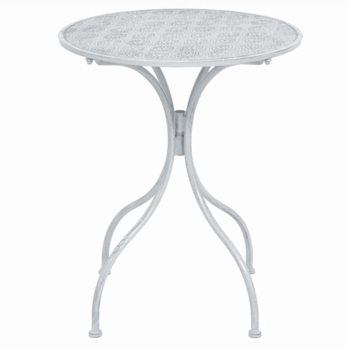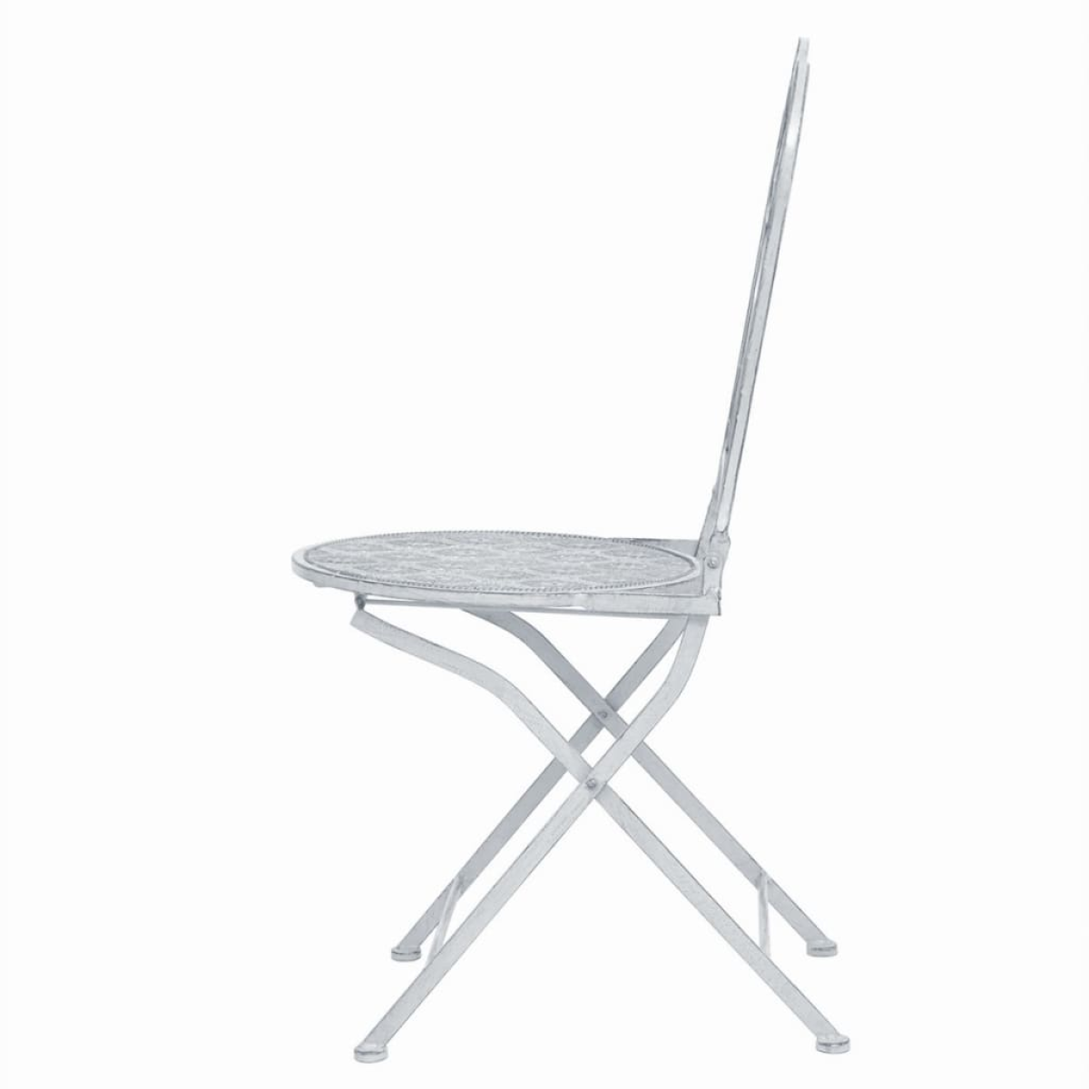 This vintage bistro set will add a classic touch to any dinner. Our steel balcony set will become the focal point of your garden, balcony or patio. The bistro set is made of powder-coated steel, which is weather-resistant and highly durable. The fancy hand-painted decorations and the rusted finish will make the dining set stand out in any garden or on any patio or balcony. The classic garden furniture set is very easy to clean with a damp cloth. The chairs can be easily folded to save space when not in use. Delivery includes 1 table and 2 folding chairs.
