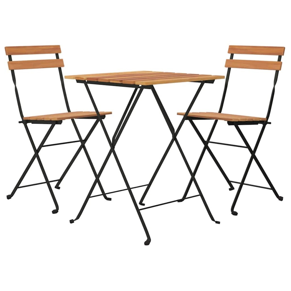 This 3 piece folding bistro set is an excellent choice for dining or relaxing in your garden, balcony or patio. Durable material: Solid teak wood is a beautiful natural material. It has been seasoned, kiln dried and then fine sanded to give a very smooth appearance. Teak wood is known for its exceptional strength and weather resistance.Stable frame: The powder-coated steel frame ensures sturdiness and stability.Foldable design: The table and chairs can be easily folded away when not in use, for easy storage and transportation. Note:In order to extend the life of your outdoor furniture, we recommend you to protect it with a waterproof cover.Each product comes with an assembly manual in the box for easy assembly.