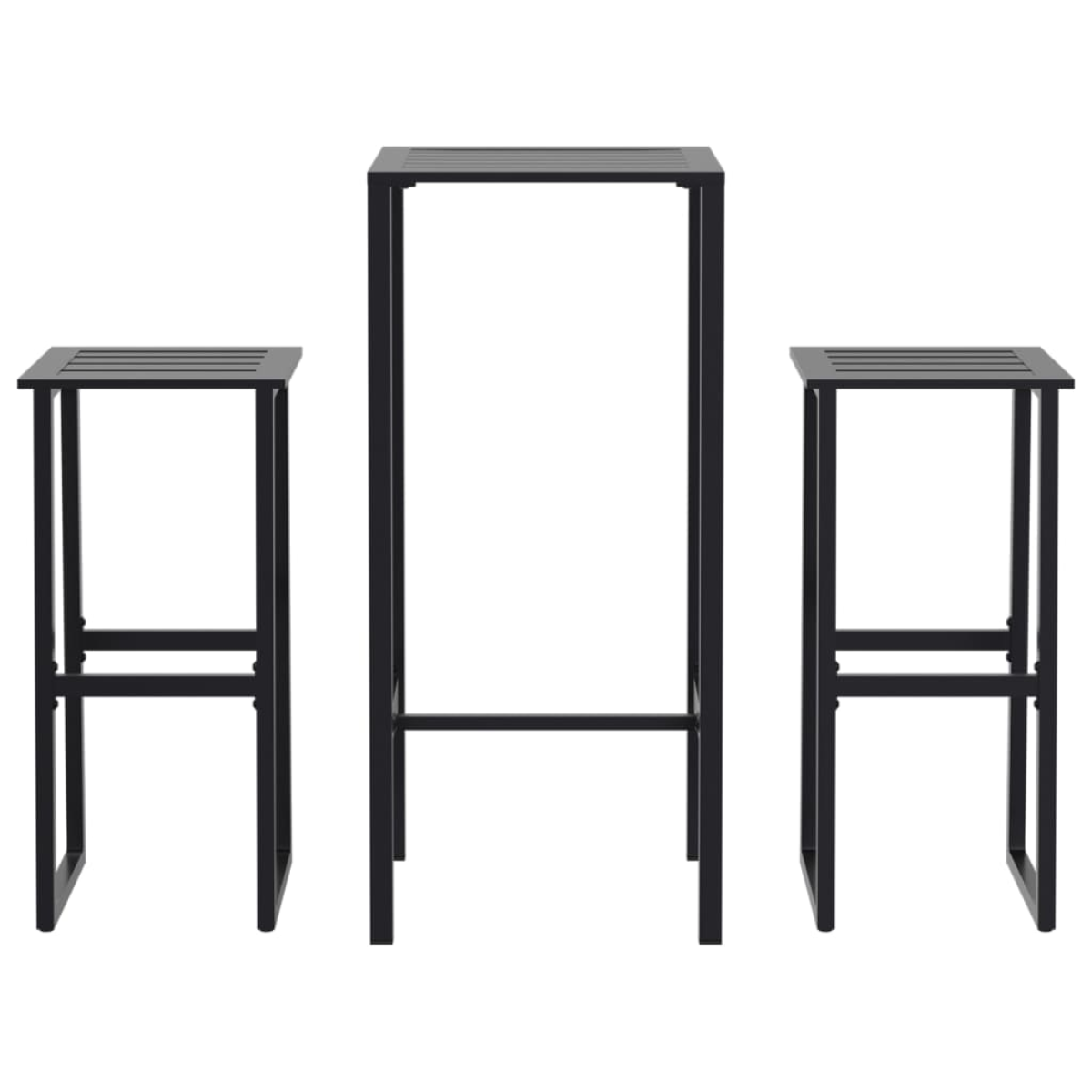 This garden bar set will make a great addition to your garden, balcony or patio! Powder-coated steel: This garden bar set is made of powder-coated steel, which is an exceptionally hard and strong material. It offers sturdiness and stability. The powder coating on the surface of steel creates a protective layer against rust, corrosion, and wear.Practical design: These bistro chairs have footrests, which can provide you added comfort, so you can sit comfortably on the chairs.Slatted tabletop: The steel tabletop featuring a slatted design is ideal for placing drinks, food, and so on.Wide applications: This multifunctional outdoor bar set features a perfect shape to fit in any environment in your house. It can be used in your kitchen, dining room, living room, patio etc.