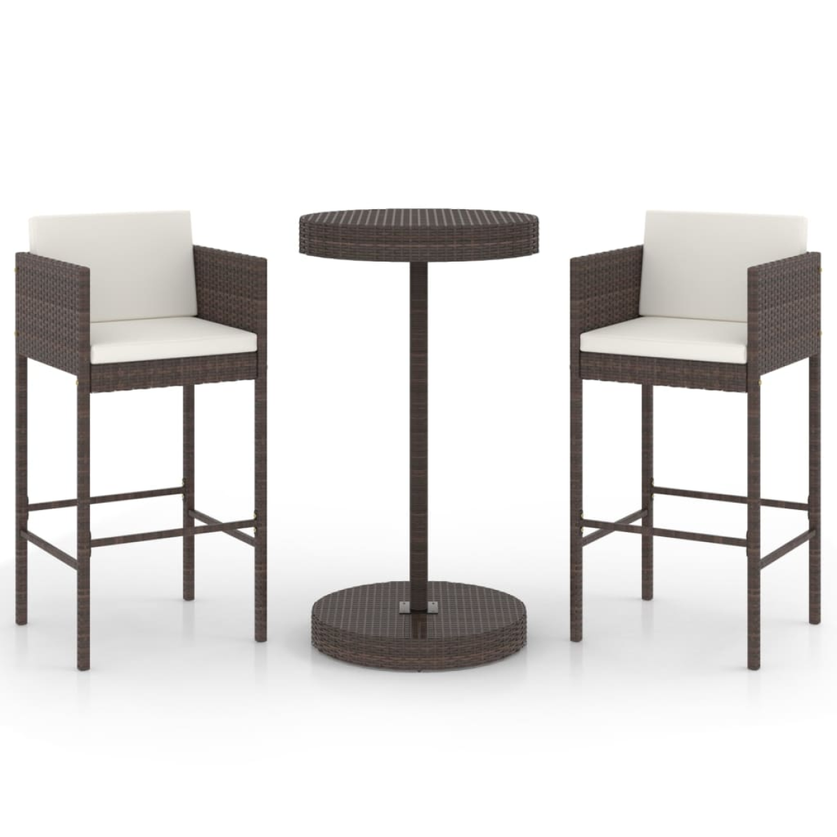 vidaXL 3 Piece Garden Bar Set with Cushions Poly Rattan Brown