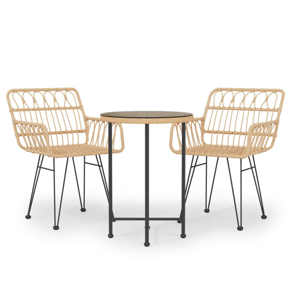 Create a compelling and cohesive aesthetic in your outdoor space with this garden dining set! Durable material: PE rattan, also known as poly rattan, is weather resistant and easy to clean. It remains beautiful on the outside for a long period of time. It offers great quality, convenience and an aesthetic look.Sturdy and stable frame: The steel frames make the patio set sturdy and stable for daily outdoor use.Practical tabletop: The smooth tabletop of the dining table is made of tempered glass which is easy to clean with a damp cloth. Additionally, the sturdy tabletop is perfect for placing meals, drinks, and other decorative items.Comfortable seating: The dining chair is designed with a backrest and armrest to offer you a comfortable seating experience.Practical footpads: The bistro set comes with footpads, which help it stand on the ground more firmly. Note:In order to extend the life of your outdoor furniture, we recommend you to protect it with a waterproof cover.Each product comes with an assembly manual in the box for easy assembly.