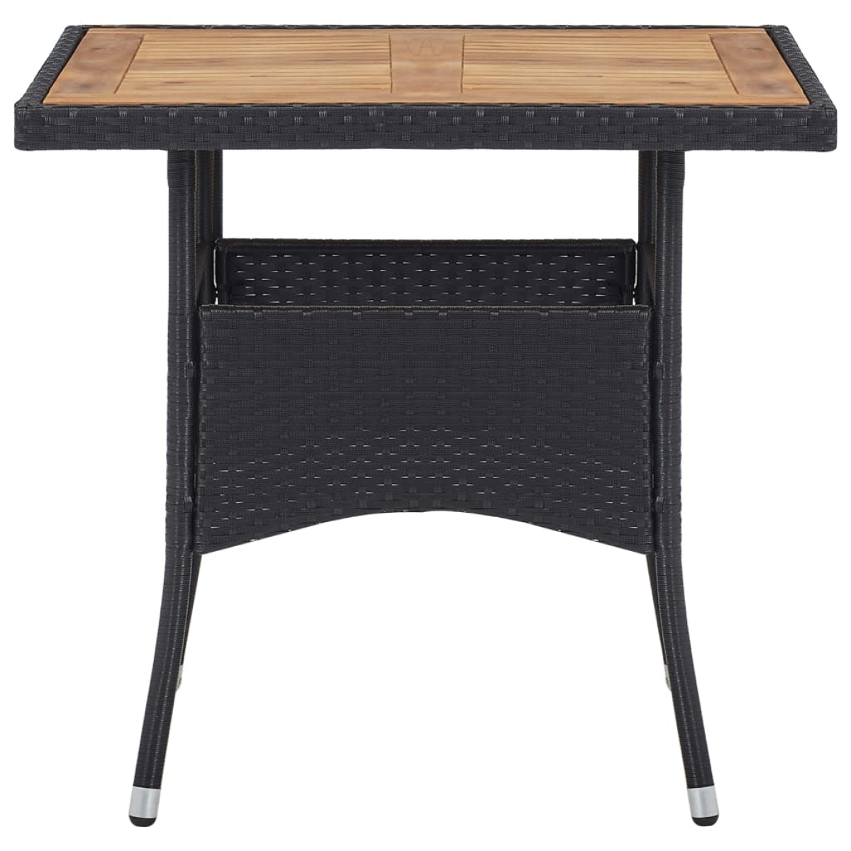 This garden dining set, with an elegant and contemporary design, will be a great choice for dining or relaxing in the garden. Premium material: Featuring a powder-coated steel frame covered with weather-resistant PE rattan, the table and chairs are durable and stable.Solid acacia wood: Solid acacia wood is a beautiful natural material. Acacia wood is a tropical hardwood, which is dense, sturdy, and durable.Lightweight construction: The lightweight poly rattan construction makes this outdoor dining set easy to move around.Comfortable design: Designed with curved backrest and armrest, these outdoor chairs provide maximum comfort.Extra comfort: The thickly padded cushions provide ultimate comfort during your sitting time. Note:In order to extend the life of your outdoor furniture, we recommend you to clean it regularly and do not leave it outdoors without protection unnecessarily.Clean: Use a mild soap solution.Storing: If possible, store in a cool, dry place indoors. If the product is stored outdoors, protect it with a waterproof cover. Wipe and dry the excess water or snow from flat surfaces after a rain or snowfall. Allow sufficient air circulation to avoid moisture-related damage.