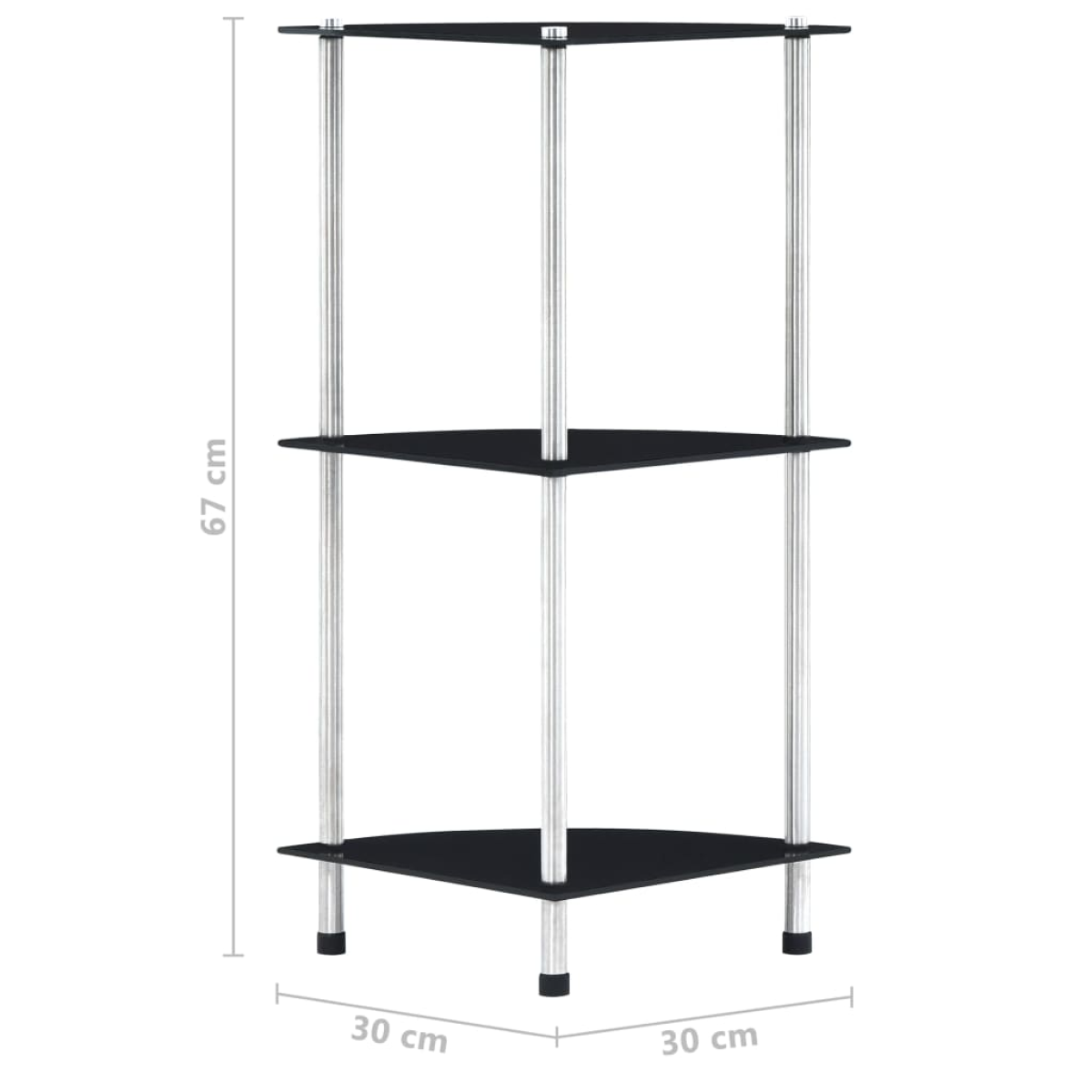 vidaXL 3-Tier Shelf Black 30x30x67 cm Tempered Glass
