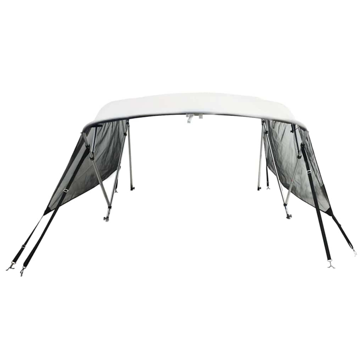 This 4-bow bimini top with sidewalls plays an effective role in protecting you from direct sunlight and harsh weather conditions such as hail or rain. Durable material: This 4-bow bimini top is made of 100% polyester with a PU coating, making it UV-resistant, water-resistant for years of service.Sturdy structure: The bimini top has an aluminium frame, and a 4-bow frame design adds to its stability.Long-lasting: The eye hooks, mounting nuts, and knobs are made of marine-grade stainless steel 316, which is anti-corrosion and especially suitable for long-term use.Practical design: This bimini top provides sunshade coverage for both sides, effectively shielding against direct sunlight and rain. Additionally, the sidewall can be easily rolled up and fastened at the top whenever you want.. Good to know:Please use the boot to protect the fabric when not using the bimini top and fold the canopy when vessel speed exceeds 25 knots.