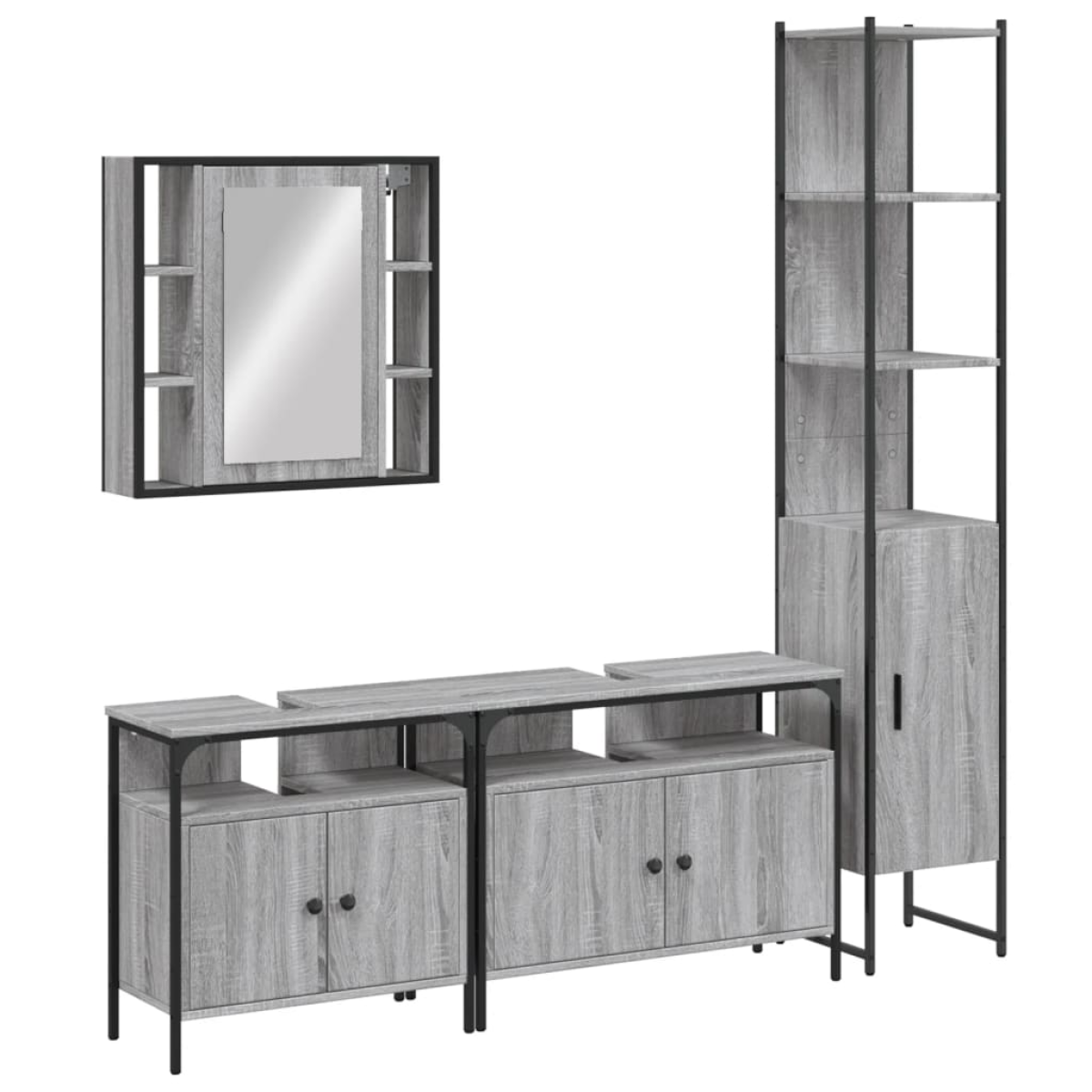 vidaXL 4 Piece Bathroom Cabinet Set Grey Sonoma Engineered Wood