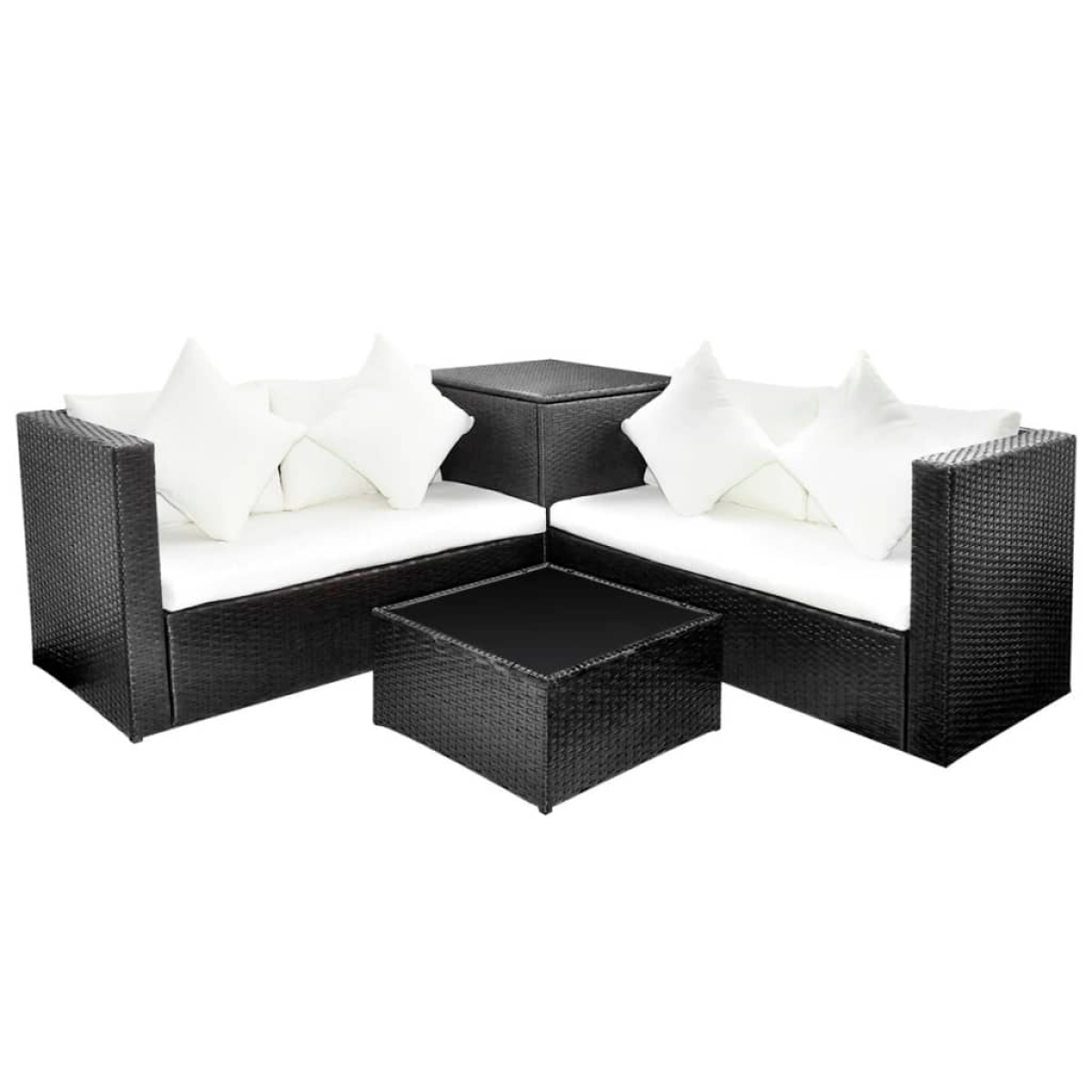 vidaXL 4 Piece Garden Lounge Set with Cushions Poly Rattan Black