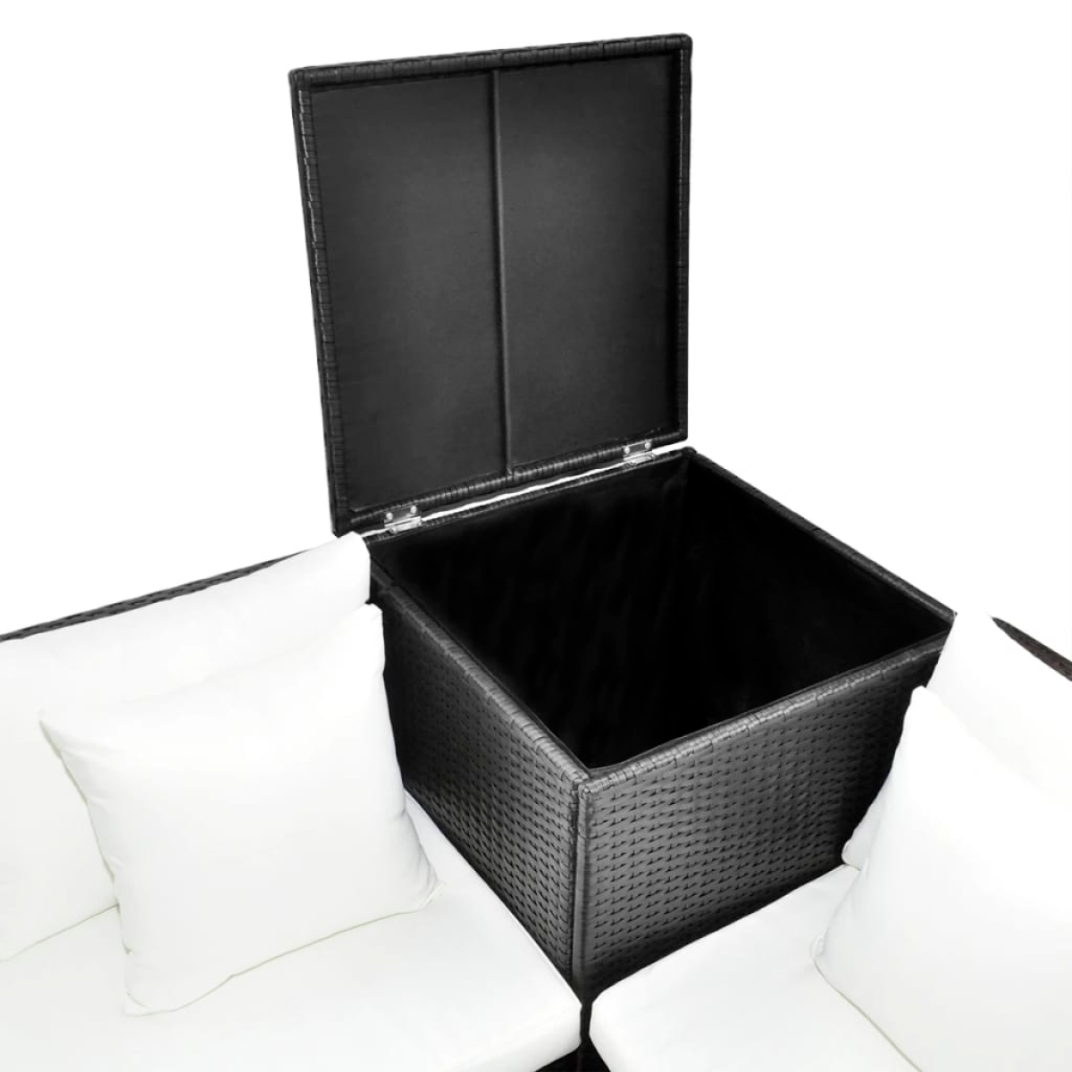 This stylish yet highly comfortable rattan sofa set will be an eye-catcher in your garden or on the patio. Thanks to the weather-resistant PE rattan, the sofa set is easy to clean and is hard-wearing and suitable for daily use. The sofa features a sturdy, powder-coated steel frame, which is highly durable. The removable seat and back cushions are very comfortable. The polyester covers are soft and easy to clean. Thanks to the large storage box, you can put in any items and take them out for immediate use. The rattan sofa set can be easily moved to suit any setting. Delivery includes two 2-seater sofas, 1 storage box, 1 coffee table, 4 back cushions, 2 seat cushions and 4 pillows. Note: We recommend covering the set in rain, snow and frost.