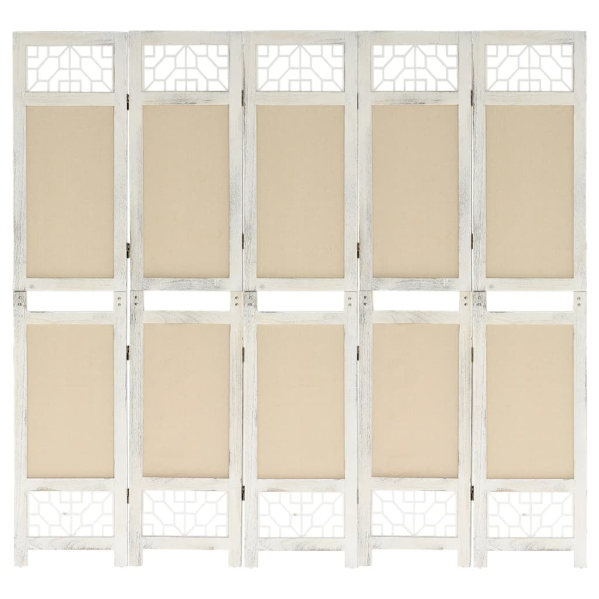 vidaXL 5-Panel Room Divider Cream 175x165 cm Fabric