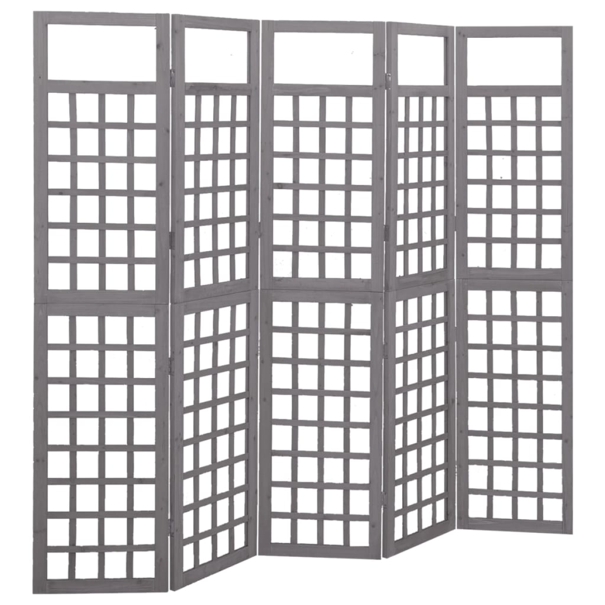 vidaXL 5-Panel Room Divider/Trellis Solid Fir Wood Grey 201.5x180 cm