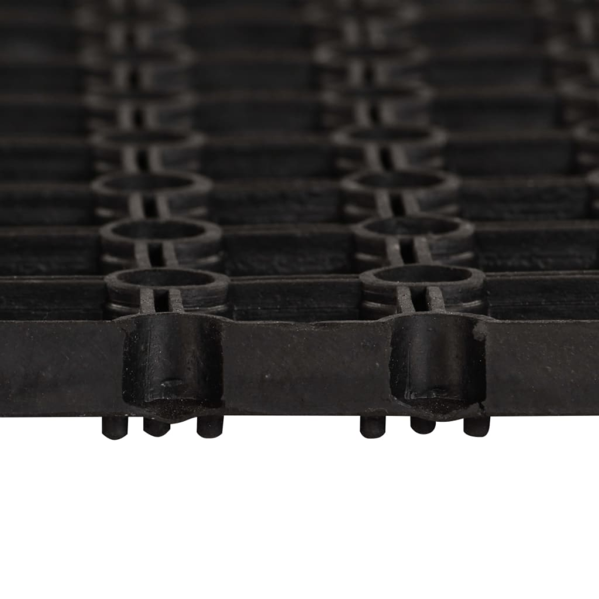 Our rubber mats can be widely used as indoor or outdoor floor coverings. They can be used as doormats, but also on the patio, or in the garage, workshop, stable, paddock, or car. You can easily connect the mats to form any desired shape or size with connectors (not included). Made of 100% rubber, the mats are weather resistant, non-slip and easy to clean. Delivery includes 5 mats.