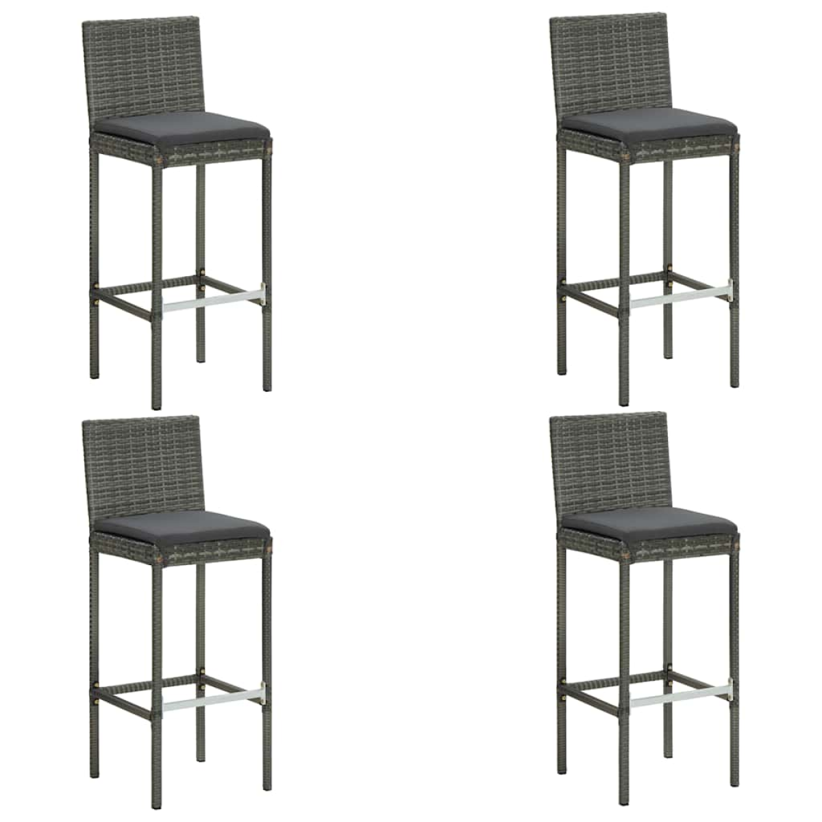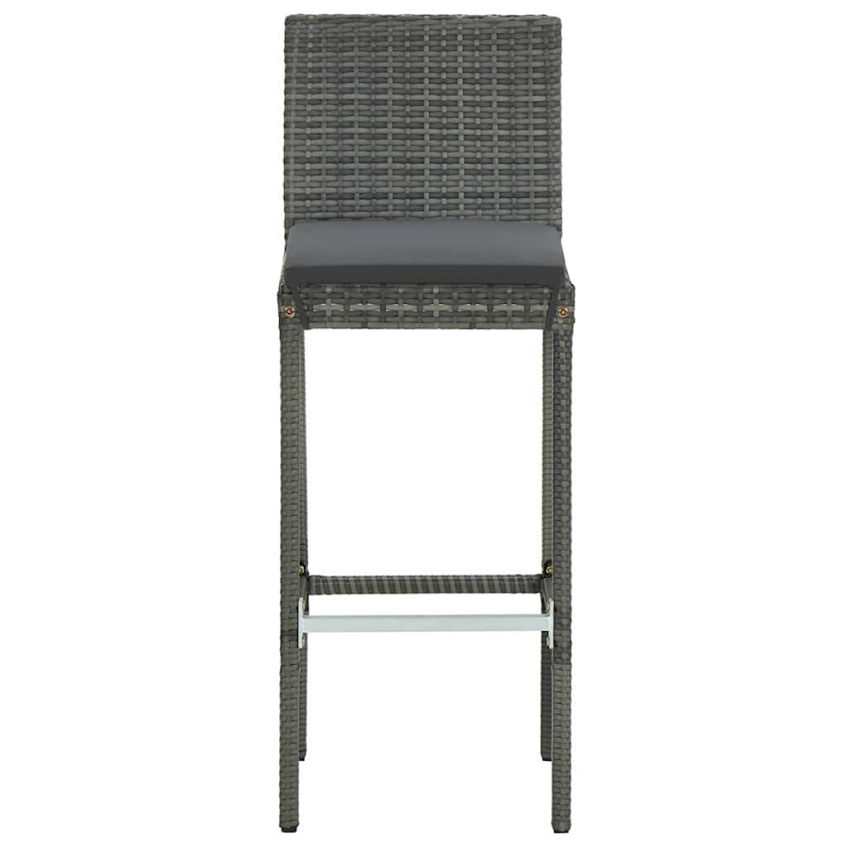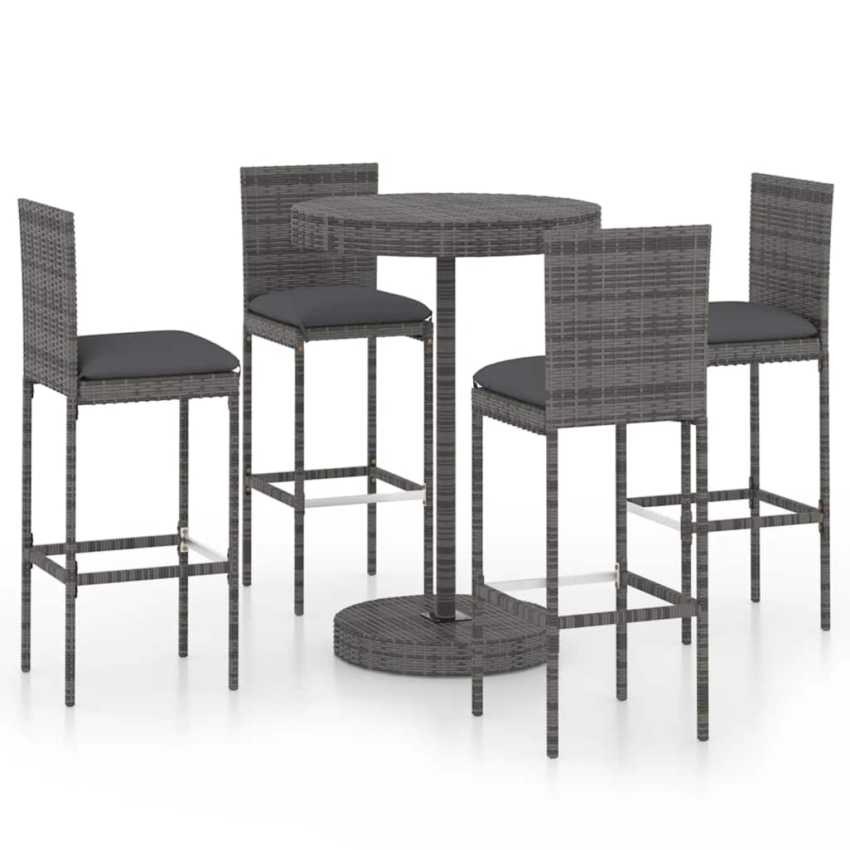 This stylish garden bar set provides you with a leisurely and comfortable time with your family and friends. The bar table is supported by a powder-coated steel frame, making it stable and sturdy. The round tabletop is ideal for placing drinks, food, or some decorative items. The stools have a strong construction of steel frame and are made of weather-resistant PE rattan, ensuring stability and are easy to move. The cushion and footrest also add additional seating comfort for the stool. The polyester cushion cover with concealed zipper makes it easy to clean. Note: In order to extend the life of your outdoor furniture, we recommend you to clean it regularly and do not leave it outdoors without protection unnecessarily.Clean: Use a mild soap solution.Storing: If possible, store in a cool, dry place indoors. If the product is stored outdoors, protect it with a waterproof cover. Wipe and dry the excess water or snow from flat surfaces after a rain or snowfall. Allow sufficient air circulation to avoid moisture-related damage.