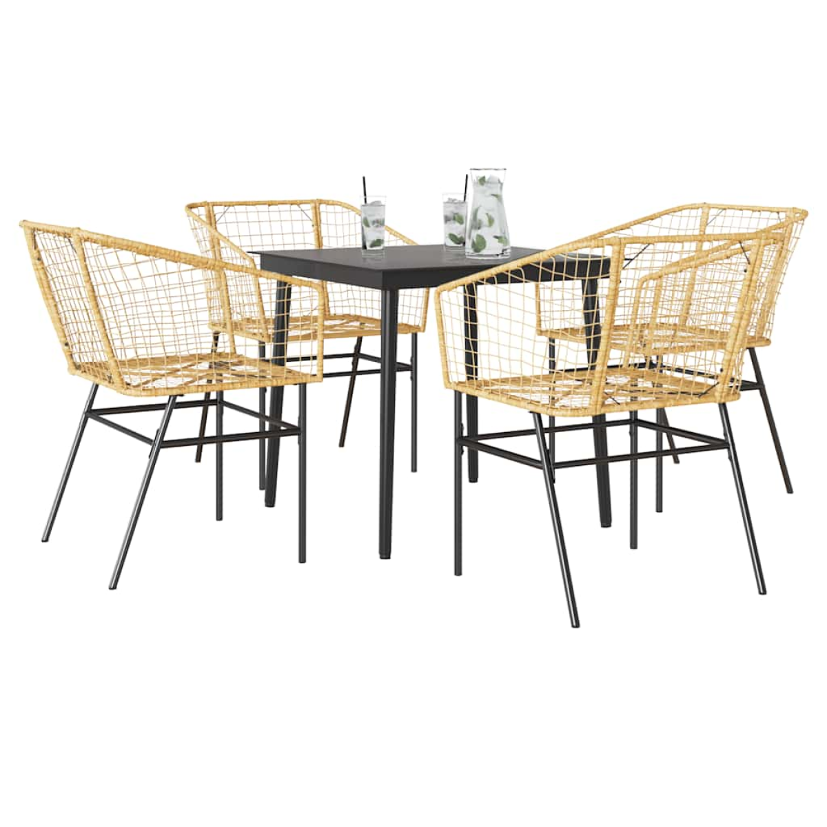 This garden dining set is a great choice for al fresco dining or just relaxing in the garden, backyard, or on the patio. Durable material: PE rattan, also known as poly rattan, is a strong, low-maintenance synthetic material that looks like natural rattan. It's lightweight, easy to clean, and commonly used for outdoor furniture due to its durability and weather-resistant properties.Robust and stable frame: The powder-coated steel frame is strong, stable, durable, and resistant to corrosion and harsh weather, ensuring long-lasting performance.Practical backrest and armrest: This garden chair features a backrest and two armrests that offer optimal support and comfort for users.Glass tabletop: The outdoor table's top is made from strong and durable tempered glass, making it easy to clean with a damp cloth and adding a touch of elegance to your outdoor space. Good to know:To make sure your outdoor furniture stays beautiful, we recommend protecting it with a waterproof cover.