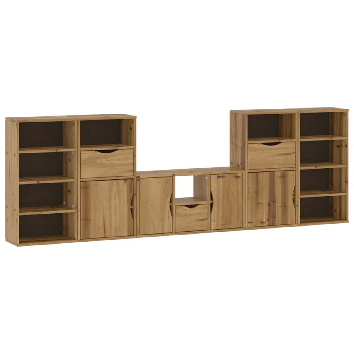 Optimise your living room space without sacrificing style with this complete set of wooden tv units with storage! Robust and stable material: Solid pinewood is known for its strength and durability. Its straight grains and distinctive knots contribute to its rustic charm.Ample storage space: This TV cabinet provides ample storage space for keeping your magazines, books, DVDs, and multimedia devices well-organised and within reach.Stable and sturdy tabletop: The sturdy top is ideal for placing your TV and stereo systems or some decorative items like vases or potted plants.Modular design: These cabinets offer modular stacking and versatile arrangement options, including vertical towers, L-shaped layouts, and horizontal rows, allowing you to customize them to suit your needs.Easy to maintain: The TV stand is easy to clean with a damp cloth and requires less maintenance. Warning:To prevent it from tipping over, this product must be used with the provided wall attachment device.Good to know:This storage furniture perfectly complements other pieces in the ODDA series, allowing you to either match the style seamlessly or combine them for larger storage solutions.