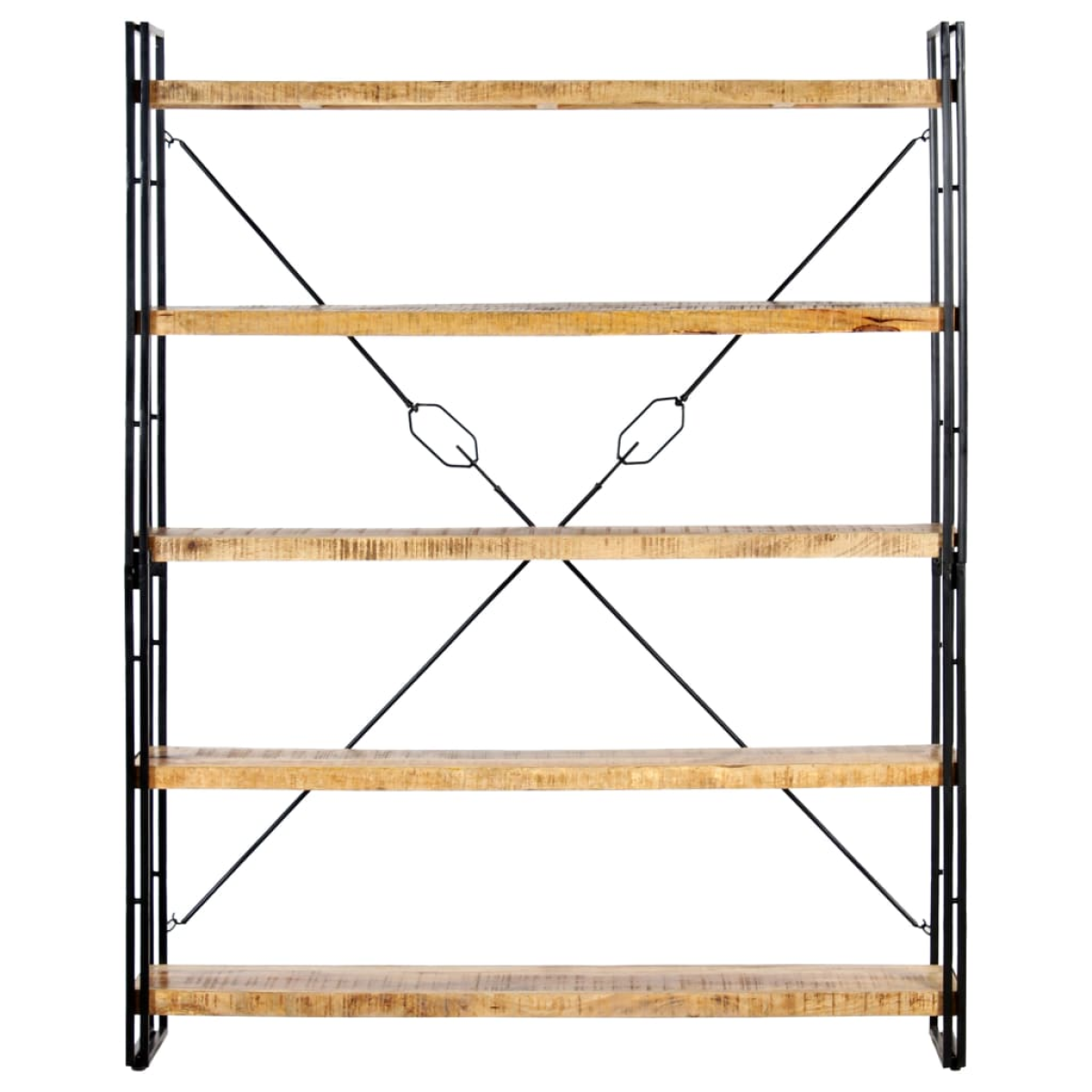 Add a touch of industrial style to your home or office with our 5-tier wooden bookcase. This bookshelf presents an ideal solution for storing and displaying your book collection, magazines, documents, or decorative items like photo frames and collectables. The bookcase has a sturdy powder-coated steel frame which gives it an industrial look. The shelves are made of solid rough mango wood, which is stable, durable and beautiful, and the craftsmanship adds to its spectacular retro style. Every step of the process is carried out with the greatest care, be it polishing, painting or lacquering. The craftsmanship and the beautiful wood grains make every piece of furniture unique and slightly different from the next. This bookcase is easy to assemble. Important note: Colours vary from piece to piece, making each of our bookcases unique. The delivery is random, ensuring the exclusivity and individuality of your product.