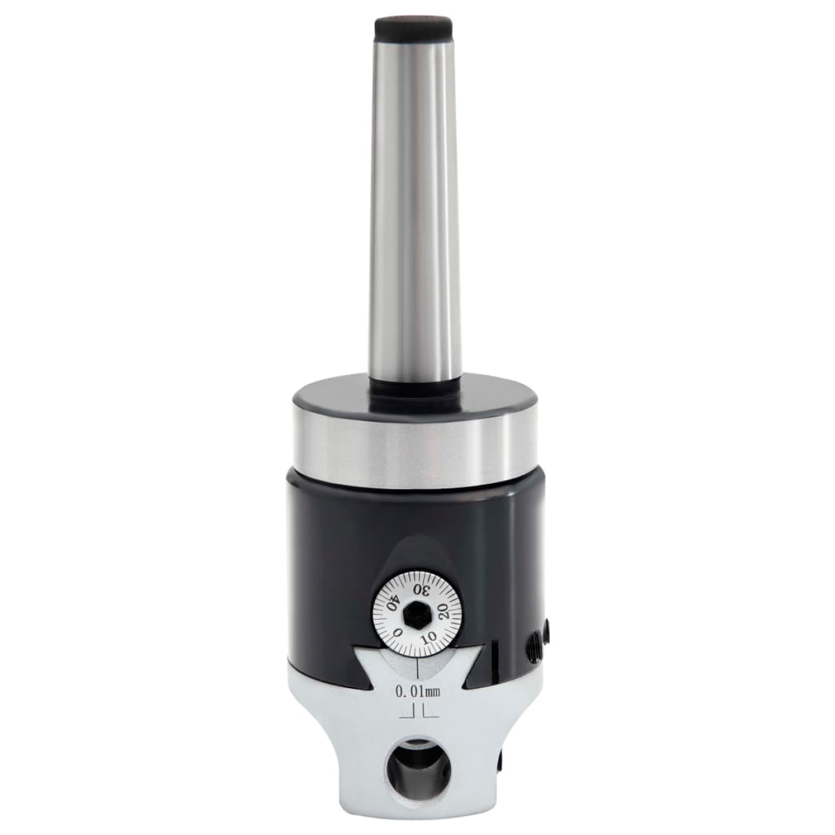 This boring head with MT2 shank is easy to use, perfect for boring end face, cylindrical, stepped hole and other processing. It features fine workmanship, and with high accuracy reaching 0.01 mm, that is applicable for working with the milling machine, machining centre. This boring set is made of steel, with high hardness and wear-resistance. The boring head can be fine-tuned to meet different needs. It can bore/drill the diameter from 10 mm to 125 mm. Delivery also includes 3-sized T wrench.