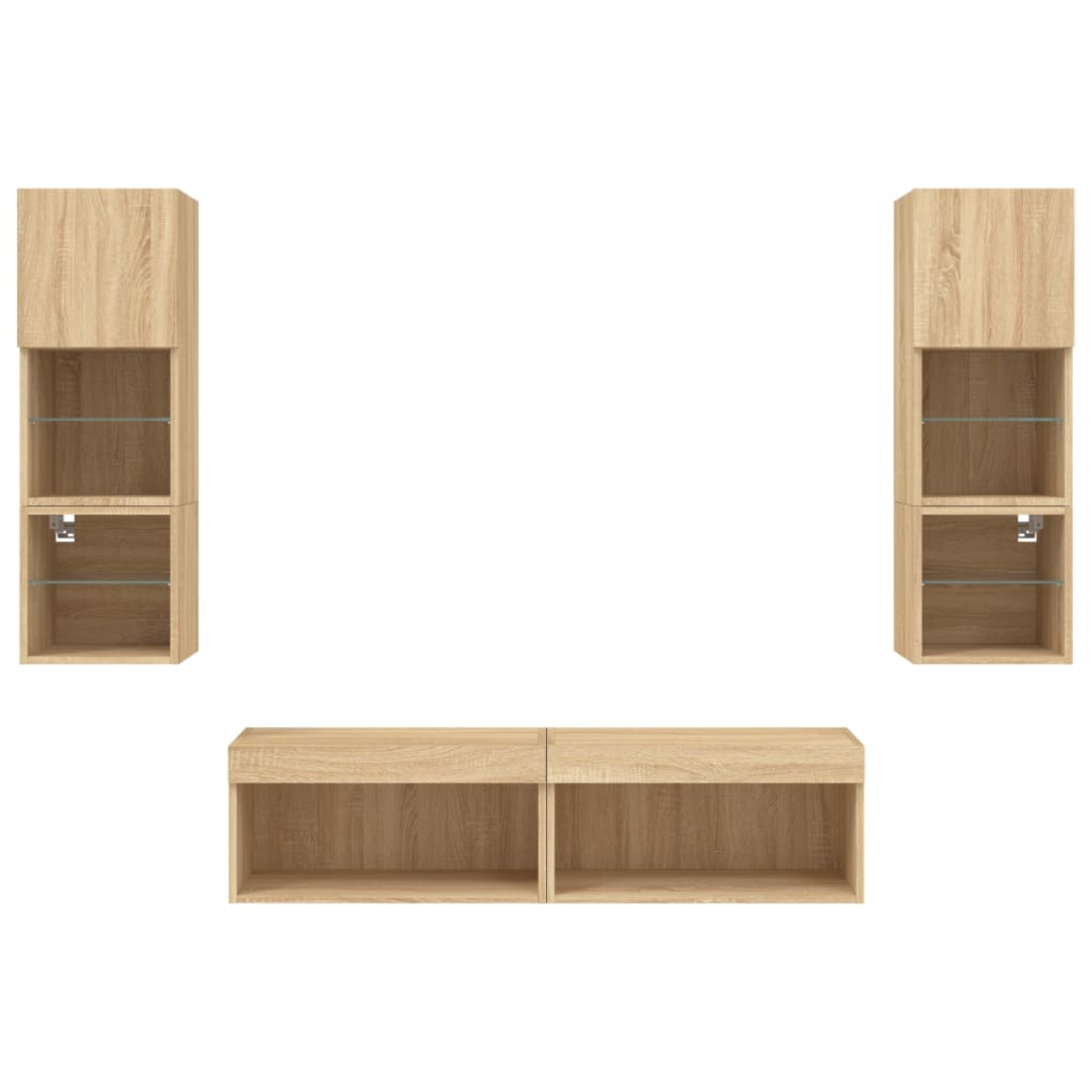 These TV wall units are the perfect solution for your living space to maximise space and keep the floor areas uncluttered. Sturdy material: The engineered wood is of exceptional quality with a smooth surface and also features strength, stability and resistance to moisture.RGB LED lights: The TV unit is equipped with vibrant RGB LED lights. With various customisable menus, you can effortlessly change the colour of the lights and even set them to adjust automatically. These LED lights not only enhance the contemporary look of the floating TV cabinet but also add to its trendy appeal.Wall-mounted design: The television unit can be wall-mounted to add extra storage space. That way, you can maximise your floor space and keep the area clean.Ample storage space: The floating TV unit provides ample space to store your daily essentials such as books, DVDs, magazines, media supplies and other items neatly organised and within easy reach.Versatile design: You can use it as a TV cabinet or mount it on the workplace wall for convenient storage of tools or other miscellaneous items. Also, it transforms an empty wall into a design feature. Good to know:Screws and plugs for inside the wall are not included. We advise to find and use screws and plugs suitable specifically for your walls. If you're not sure, you can consult with a professional. Please read and follow each step of the instructions.The product has a USB connector that requires a certified 5V USB power source (not included).