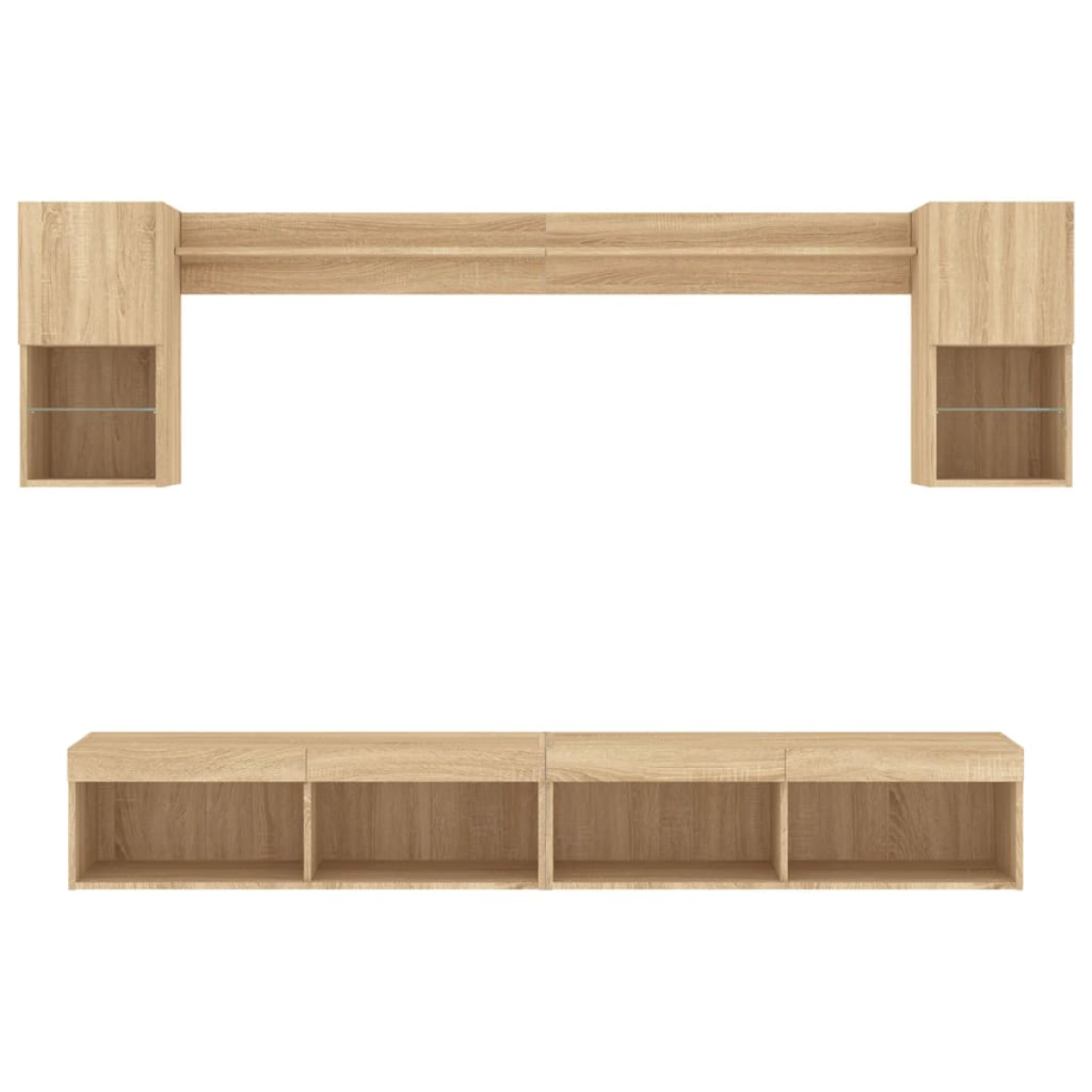 These TV wall units are the perfect solution for your living space to maximise space and keep the floor areas uncluttered. Sturdy material: The engineered wood is of exceptional quality with a smooth surface and also features strength, stability and resistance to moisture.RGB LED lights: The TV unit is equipped with vibrant RGB LED lights. With various customisable menus, you can effortlessly change the colour of the lights and even set them to adjust automatically. These LED lights not only enhance the contemporary look of the floating TV cabinet but also add to its trendy appeal.Wall-mounted design: The television unit can be wall-mounted to add extra storage space. That way, you can maximise your floor space and keep the area clean.Ample storage space: The floating TV unit provides ample space to store your daily essentials such as books, DVDs, magazines, media supplies and other items neatly organised and within easy reach.Versatile design: You can use it as a TV cabinet or mount it on the workplace wall for convenient storage of tools or other miscellaneous items. Also, it transforms an empty wall into a design feature. Good to know:Screws and plugs for inside the wall are not included. We advise to find and use screws and plugs suitable specifically for your walls. If you're not sure, you can consult with a professional. Please read and follow each step of the instructions.The product has a USB connector that requires a certified 5V USB power source (not included).
