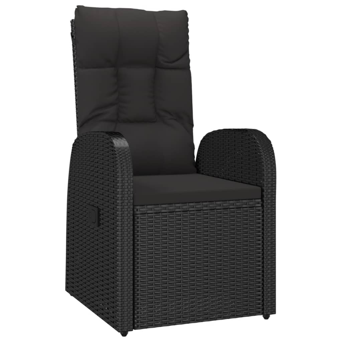 This garden dining set, with an elegant and contemporary design, will be a great choice for dining or relaxing in the garden. Durable material: PE rattan, also known as poly rattan, is weather resistant and easy to clean. It remains beautiful on the outside for a long period of time. It offers great quality, convenience and an aesthetic look.Stable frame: The powder-coated steel frame of the garden furniture set ensures sturdiness and stability.Reclining function: The garden chairs of this outdoor dining set are specially designed with a reclining function so that you can adjust the backrest as per your comfort. And two of them can adjust the footrests.Practical table: The sturdy tabletop is perfect for keeping your phone, book, snack or drink within easy reach.Extra comfort: The thickly padded cushion of the patio dining set provides ultimate comfort during your relaxing time. Note:To make sure your outdoor furniture stays beautiful, we recommend protecting it with a waterproof cover. Good to know:To make assembly as easy as possible, each product is delivered with a manual.