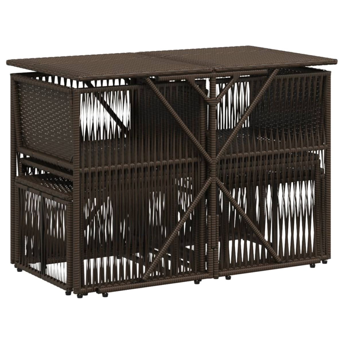This garden dining set is a great choice for al fresco dining or just relaxing in the garden, backyard, or on the patio. Durable material: PE rattan, also known as poly rattan, is a strong, low-maintenance synthetic material that looks like natural rattan. It's lightweight, easy to clean, and commonly used for outdoor furniture due to its durability and weather-resistant properties.Compact storage: These garden chairs and stools can be neatly tucked underneath the table, allowing for space-saving storage.Comfortable seat experience: This outdoor furniture, complete with thickly padded cushions, offers a comfortable seating experience.Removable and washable cover: These seat cushions feature removable covers for easy washing and maintenance.Robust and stable frame: The powder-coated steel frame ensures that the garden furniture is strong and stable for daily outdoor use. Good to know: To make sure your outdoor furniture stays beautiful, we recommend protecting it with a waterproof cover.