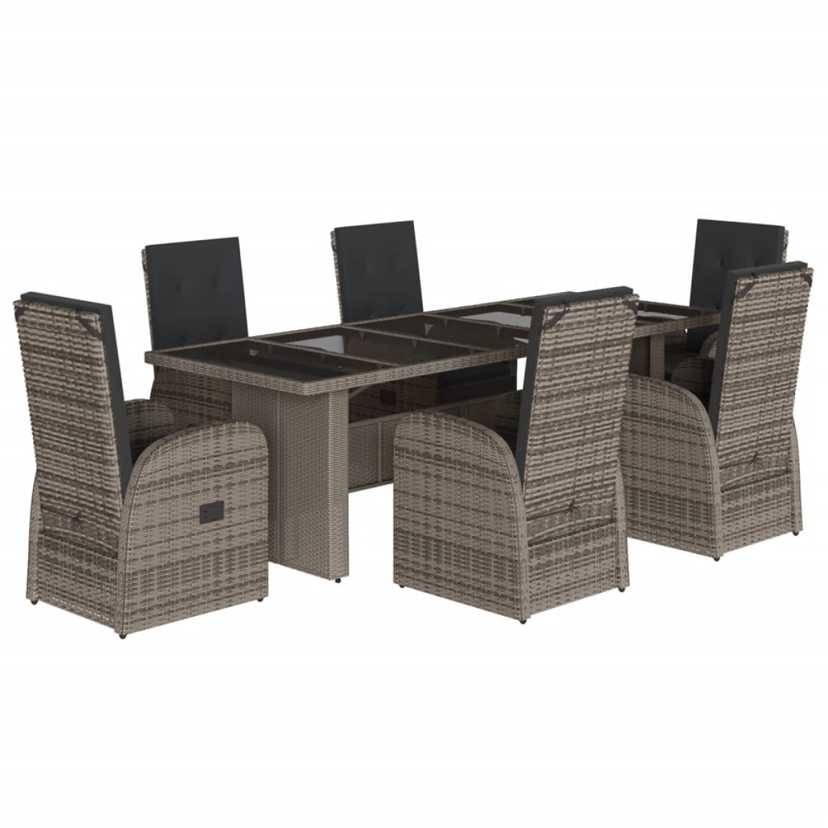 This garden dining set is a great choice for al fresco dining or just relaxing in the garden, backyard, or on the patio. Durable material: PE rattan, also known as poly rattan, is a strong, low-maintenance synthetic material that looks like natural rattan. It's lightweight, easy to clean, and commonly used for outdoor furniture due to its durability and weather-resistant properties.Adjustable backrest and footrest: This garden seat has a handle. You can adjust the backrest and footrest to any position by pulling the handle, and quickly return it to its original position.Comfortable seat experience: This outdoor furniture, complete with thickly padded cushions, offers a comfortable seating experience.Removable and washable cover: These seat cushions feature removable covers for easy washing and maintenance.Glass tabletop: The outdoor table's top is made from strong and durable tempered glass, making it easy to clean with a damp cloth and adding a touch of elegance to your outdoor space. Good to know:To make sure your outdoor furniture stays beautiful, we recommend protecting it with a waterproof cover.