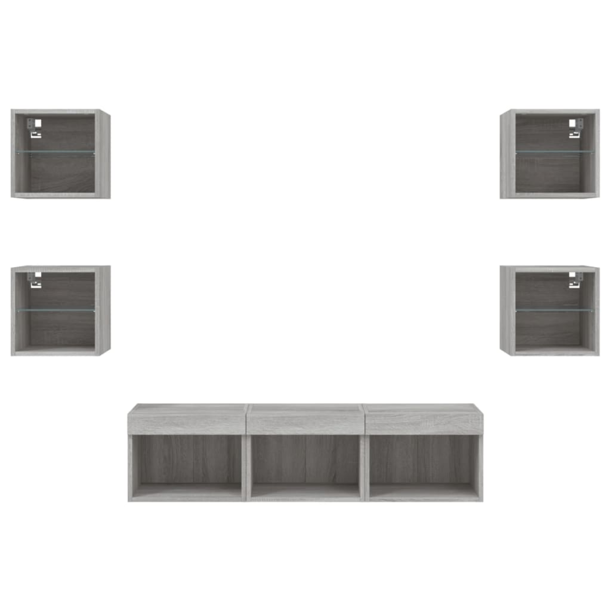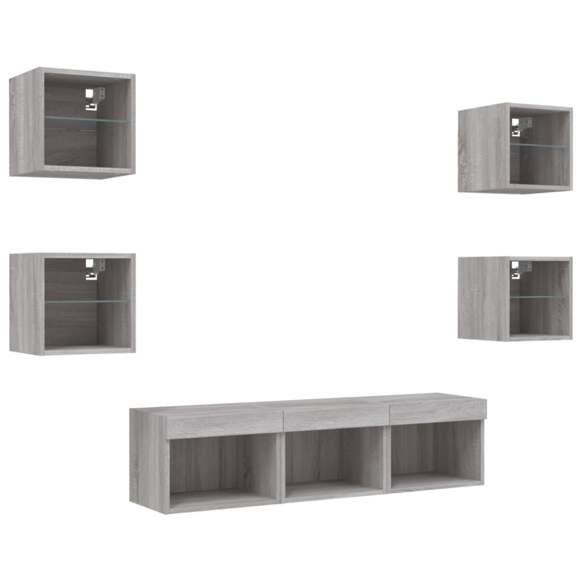 These TV wall units are the perfect solution for your living space to maximise space and keep the floor areas uncluttered. Sturdy material: The engineered wood is of exceptional quality with a smooth surface and also features strength, stability and resistance to moisture.RGB LED lights: The TV unit is equipped with vibrant RGB LED lights. With various customisable menus, you can effortlessly change the colour of the lights and even set them to adjust automatically. These LED lights not only enhance the contemporary look of the floating TV cabinet but also add to its trendy appeal.Wall-mounted design: The television unit can be wall-mounted to add extra storage space. That way, you can maximise your floor space and keep the area clean.Ample storage space: The floating TV unit provides ample space to store your daily essentials such as books, DVDs, magazines, media supplies and other items neatly organised and within easy reach.Versatile design: You can use it as a TV cabinet or mount it on the workplace wall for convenient storage of tools or other miscellaneous items. Also, it transforms an empty wall into a design feature. Good to know:Screws and plugs for inside the wall are not included. We advise to find and use screws and plugs suitable specifically for your walls. If you're not sure, you can consult with a professional. Please read and follow each step of the instructions.The product has a USB connector that requires a certified 5V USB power source (not included).
