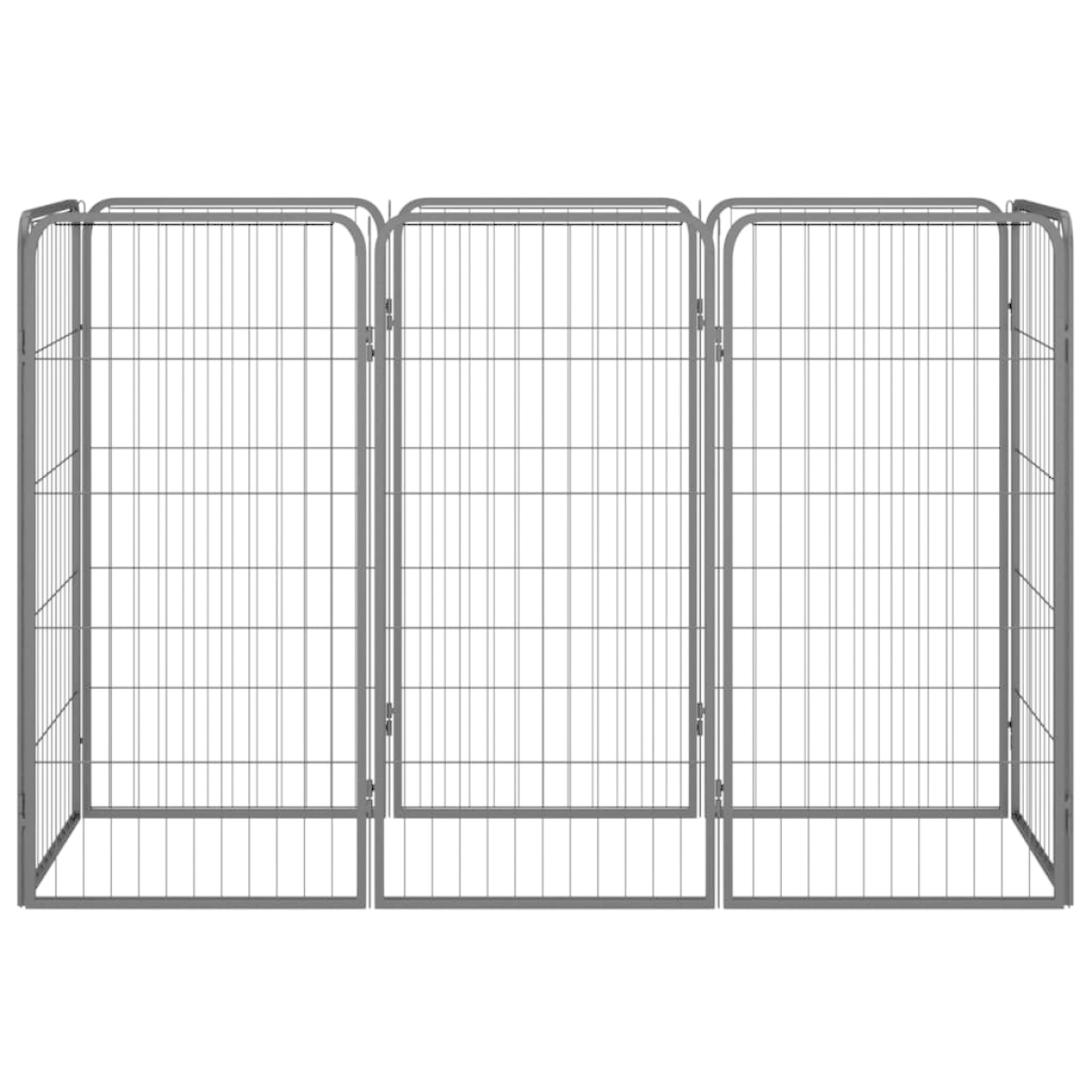 This heavy-duty dog playpen will make a perfect play paradise for your dogs! It will be a great choice for professional trainers and dog lovers alike. Sturdy material: The dog kennel is made of powder-coated steel, sturdy and durable, ensuring years of use with little maintenance.Safe exercise space: Providing ample exercise space, the steel-bar walls of the puppy playpen help prevent mischief and unexpected accidents while enabling ventilation.Firm-secured accessories: The included rods connecting each panel can be inserted into grassland, which provides great stability.DIY assembly: The outdoor dog kennel features multiple panels, so you can assemble it to any shape and size you want. Note:Each product comes with an assembly manual in the box for easy assembly.