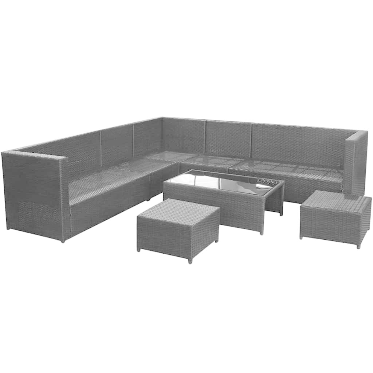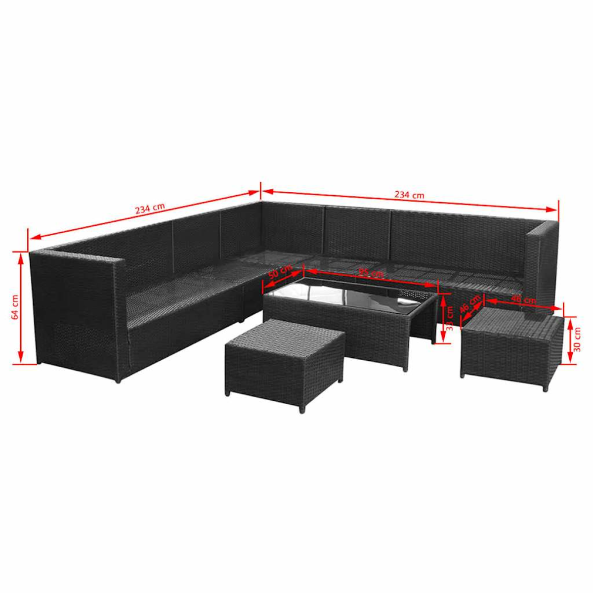 vidaXL 8 Piece Garden Lounge Set with Cushions Poly Rattan Black