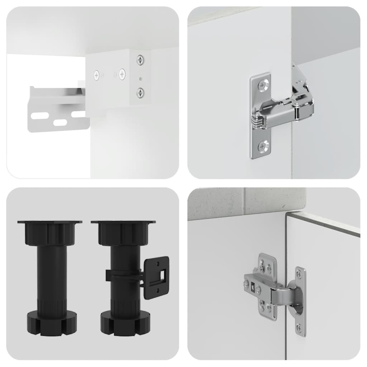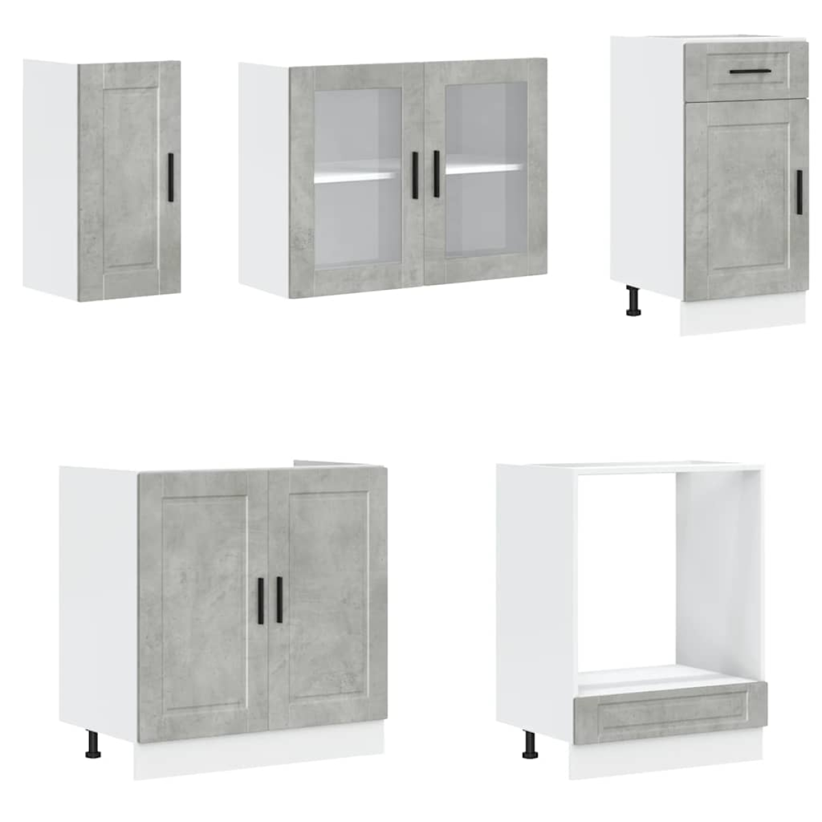 This 8-piece kitchen cabinet set, with its elegant design, optimises your kitchen space and provides ample storage space for your personal belongings! Stable and durable material: Engineered wood is a durable and stable material with a smooth surface that is resistant to moisture, warping, and splitting, making it a reliable choice for a variety of projects.Ample storage space: The kitchen cabinet set has many compartments, and offers sufficient space to store bowls, plates, pots, and other kitchen appliances.Adjustable feet: The bottom cabinets feature adjustable feet that can be adjusted in height to suit your kitchen layout.Easy to maintain: Thanks to its smooth surface, these kitchen cabinets are easy to clean with a damp cloth and require less maintenance. Warning:This product must be secured by installing a worktop. Good to know:Screw(s) and plug(s) for inside the wall are not included. Seek and use screw(s) and plug(s) suitable for your walls. If you are uncertain, seek professional advice. Read and follow each step of the instruction carefully.The worktop, sink and faucet are not included in the delivery.