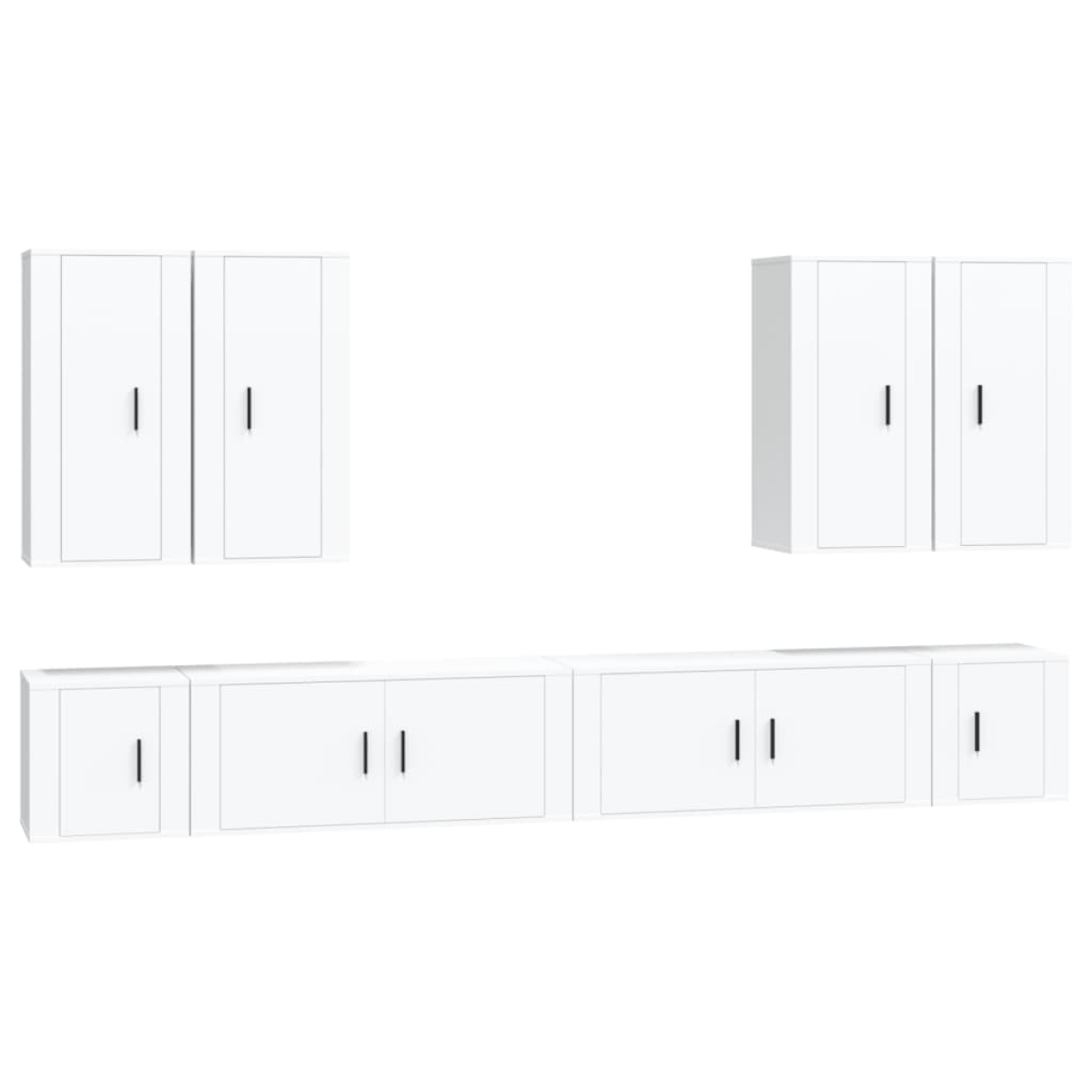 This classic TV cabinet set is designed to be a focal point of your room, featuring a trendy yet practical design. Sturdy material: The engineered wood is of exceptional quality with smooth surface and also features strength, stability and resistance to moisture.Ample storage space: The TV stand set provides ample storage space to keep all your magazines, DVDs and any other items well organised.Wall-mounted design: The TV unit doesn't take up any floor space. You can hang it on the wall easily. Good to know:To make assembly as easy as possible, each product is delivered with a manual.Screws and plugs for inside the wall are not included. We advise to find and use screws and plugs suitable specifically for your walls. If you're not sure, you can consult with a professional. Please read and follow each step of the instructions.