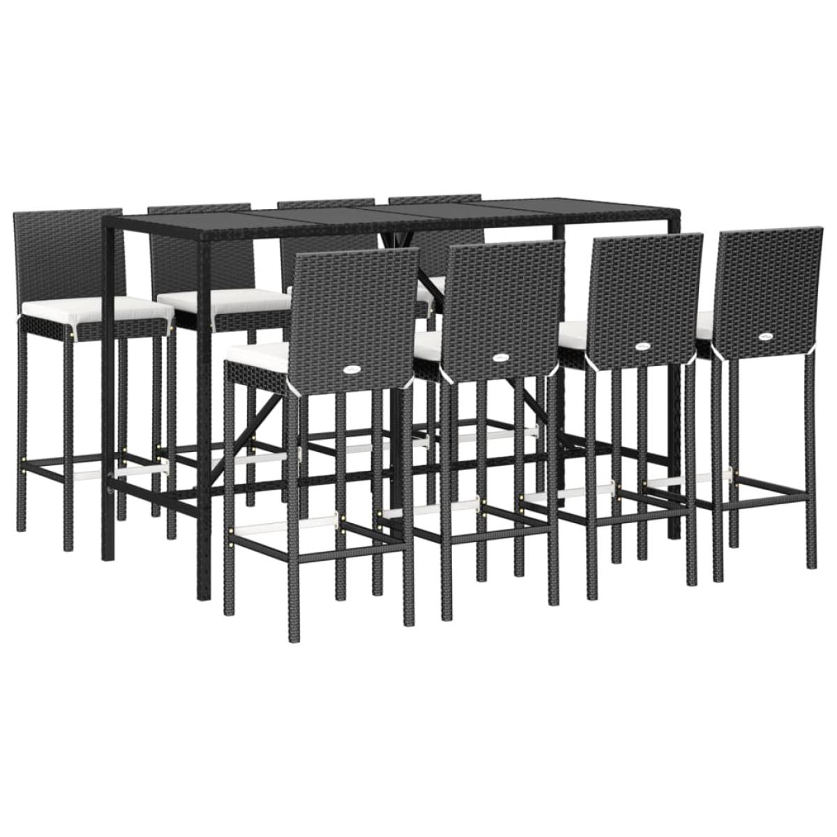 vidaXL 9 Piece Garden Bar Set with Cushions Black Poly Rattan