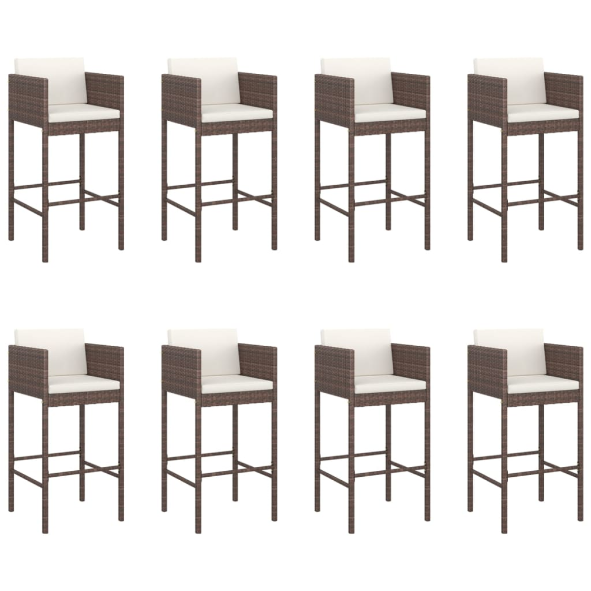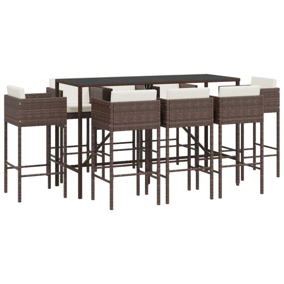 This trendy garden bar set, combining both style and function, is surely meant to be the centrepiece of your garden, patio, and any other living space. Weather-resistant material: PE rattan, also known as poly rattan, is weather resistant and easy to clean. It remains beautiful on the outside for a long period of time. It offers great quality, convenience and an aesthetic look.Sturdy and stable frame: The powder-coated steel frames make the bar table set sturdy and stable for daily outdoor use.Comfortable seating: The bar stool is designed with footrest, backrest and armrests to offer you a comfortable seating experience. The soft seat and back cushions also add extra comfort.Tempered glass tabletop: The tabletop of the bar table is made of tempered glass, making it easy to clean. Additionally, it offers excellent support for holding your drinks, snacks, and your favourite decorations. Good to know:To make sure your outdoor furniture stays beautiful, we recommend protecting it with a waterproof cover.