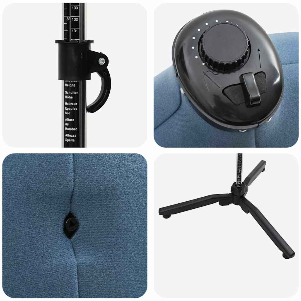 vidaXL Adjustable Dress Form Female Manual Blue 37.5-45.5 inch Fabric