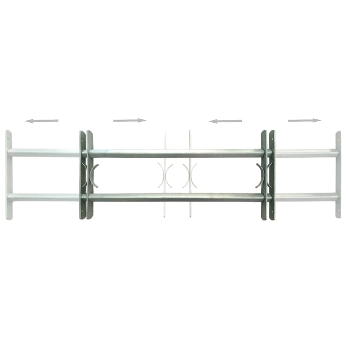 This set of 2 security grilles are manufactured to a high standard in order to increase the security of your house or office. Made of solid galvanised steel, this security grille with 2 crossbars is sturdy and durable, to effectively protect your property from burglary. With the decorative elements, the window grille also adds a touch of style to your house. This security grille can be installed horizontally with its adjustment in width from 700-1050 mm to fit a variety of windows. Our window grille is not only a high security option, but also a piece of fine workmanship. Delivery also includes mounting accessories.