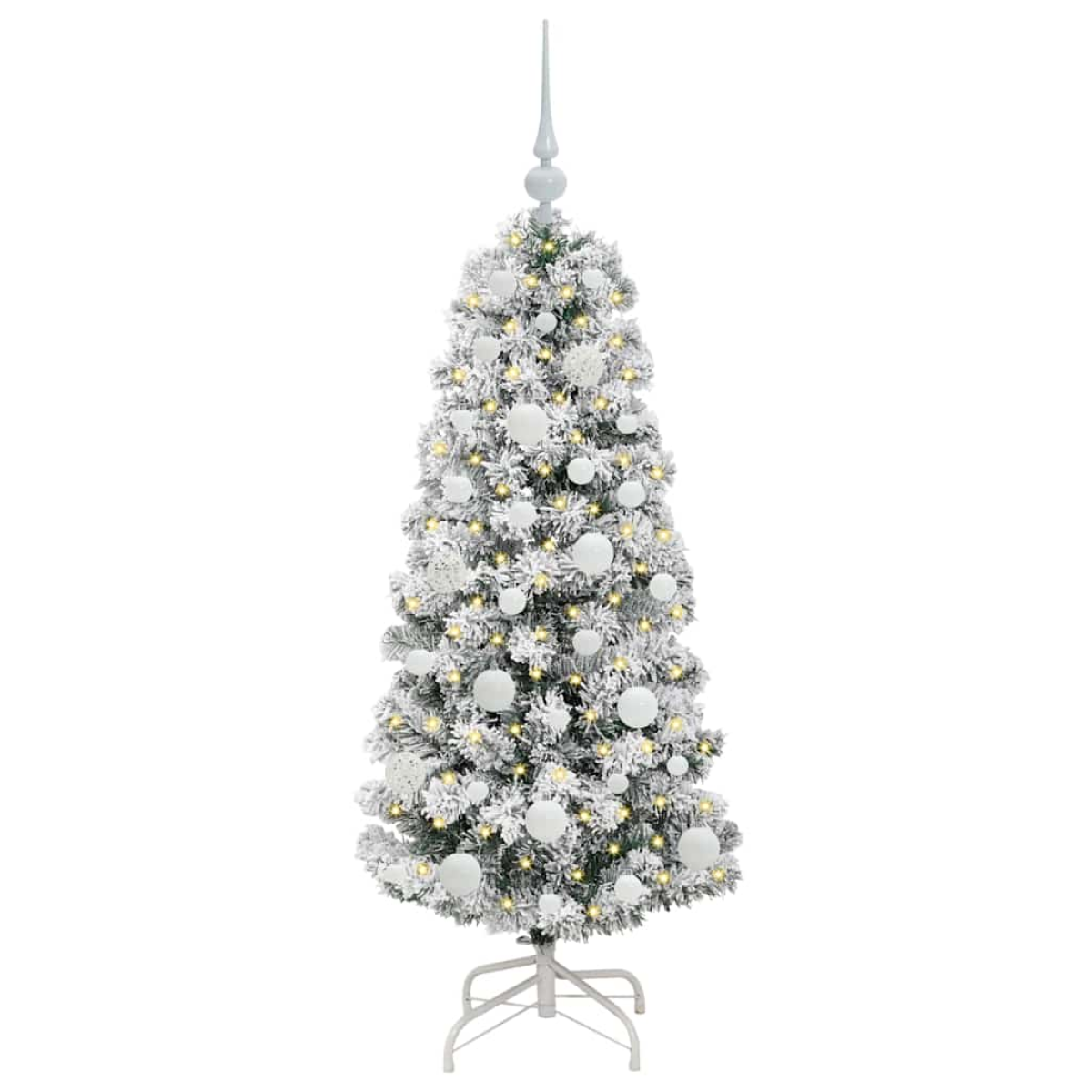 - 1 x Artificial hinged Christmas tree, 1 x Stand, 1 x LED string light, 1 x Peak, 20 x 3 cm ball, 21 x 4 cm ball, 20 x 6 cm ball