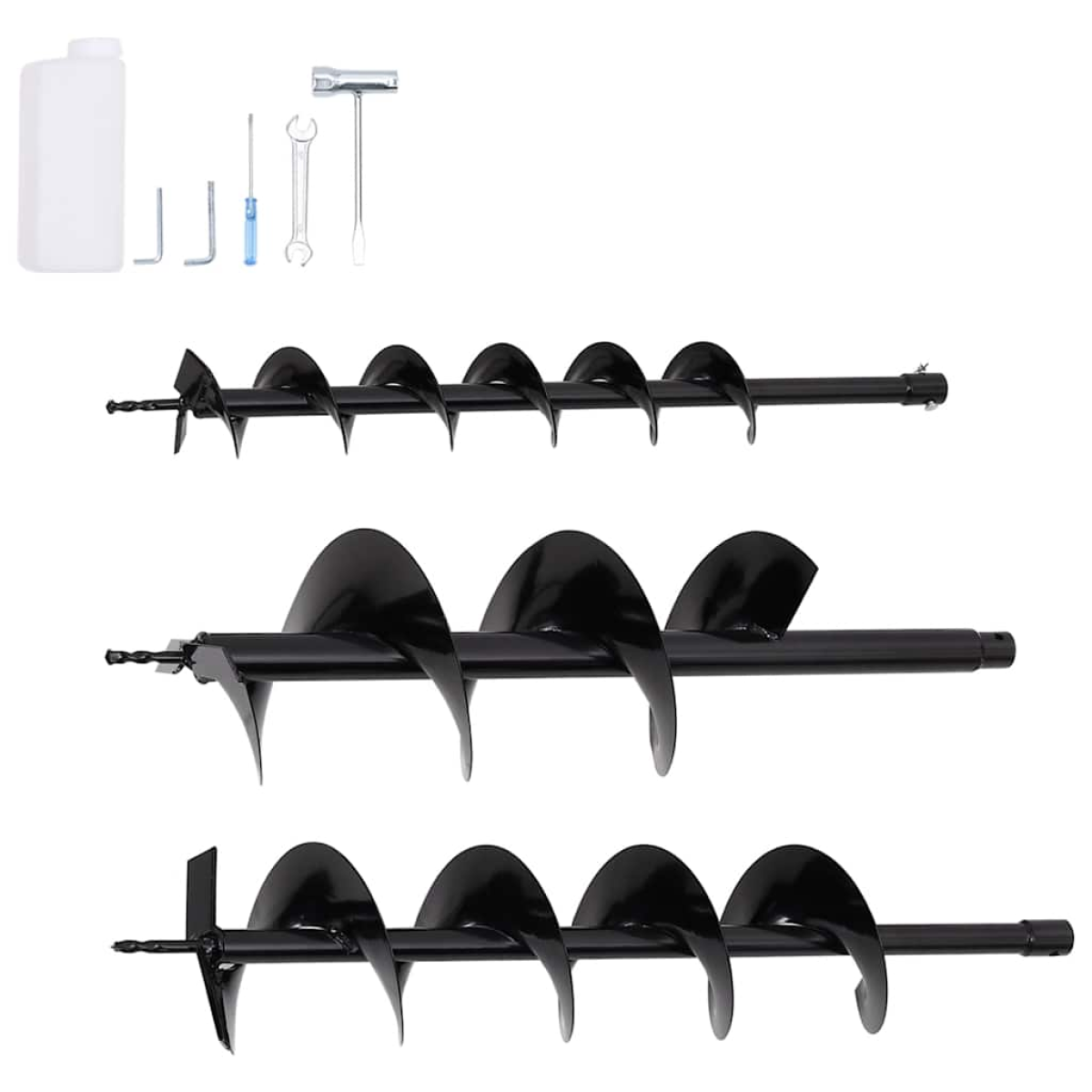 Equipped with a 52 cc gasoline engine, this auger can be easily handled, copying with a wide variety of drilling tasks such as tree planting, road construction, fence post setting, etc. This gasoline ground auger comes complete with 3 iron ground drills, 1 ratio bottle, 1 drill fix set and 1 tool set. The provided 3 drills have different diameters so that you could choose whichever to accomplish your work. With the anti-vibration handle, it is ergonomically designed, thus it is easy and comfortably operated, and very accurate at the same time. With this powerful auger, you don't have to worry about any arduous ground drilling work.