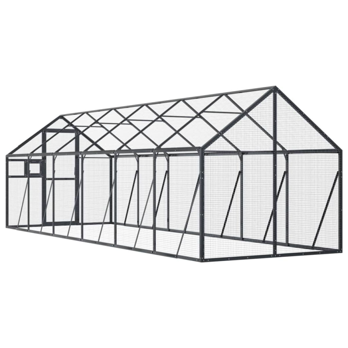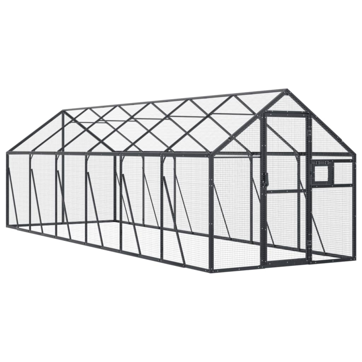 This aviary provides a cosy and comfortable place for your birds to fly and play safely. Sturdy frame: Aluminium metal is lightweight and strong. It's resistant to corrosion with a self-protecting oxide layer. Thanks to the sturdy aluminium construction, this bird aviary is built to last.Wire mesh gird: The budgie cage is equipped with wire mesh grids that prevent mischief and unexpected accidents. In addition, they also allow you to observe your birds daily and guarantee your birds a wide field of view and enough fresh air.Ample activity room: The parrot cage provides your birds with ample activity room to walk around, play and fly around with ease. Besides, it is also suitable for other small animals such as rabbits, ducks, chickens, geese, etc.Lockable door and window: The hinged door with a lockable latch system of the large bird cage ensures extra security and safety for your birds. The large parrot cage also has a lockable window for easy feeding.
