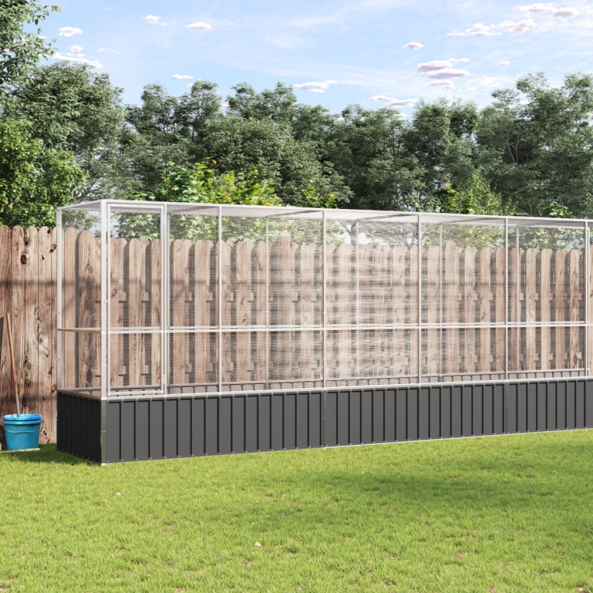 This aviary with extension provides a cosy and comfortable place for your birds to fly and play safely. Sturdy frame: Steel is an exceptionally hard and strong material. It offers sturdiness and stability. Galvanisation provides better protection against corrosion and is useful for products that'll be used outdoors as well as in harsh environments. Thanks to the sturdy galvanised steel construction, this bird aviary is built to last.Steel mesh grid: The budgie cage is equipped with steel mesh grids that prevent mischief and unexpected accidents. In addition, they also allow you to observe your birds daily and guarantee your birds a wide field of view and enough fresh air.Ample activity room: The parrot cage provides your birds with ample activity room to walk around, play and fly around with ease. Besides, it is also suitable for other small animals such as rabbits, ducks, chickens, geese, etc.Lockable door: The hinged door with a lockable system of the large bird cage ensures extra security and safety for your birds.