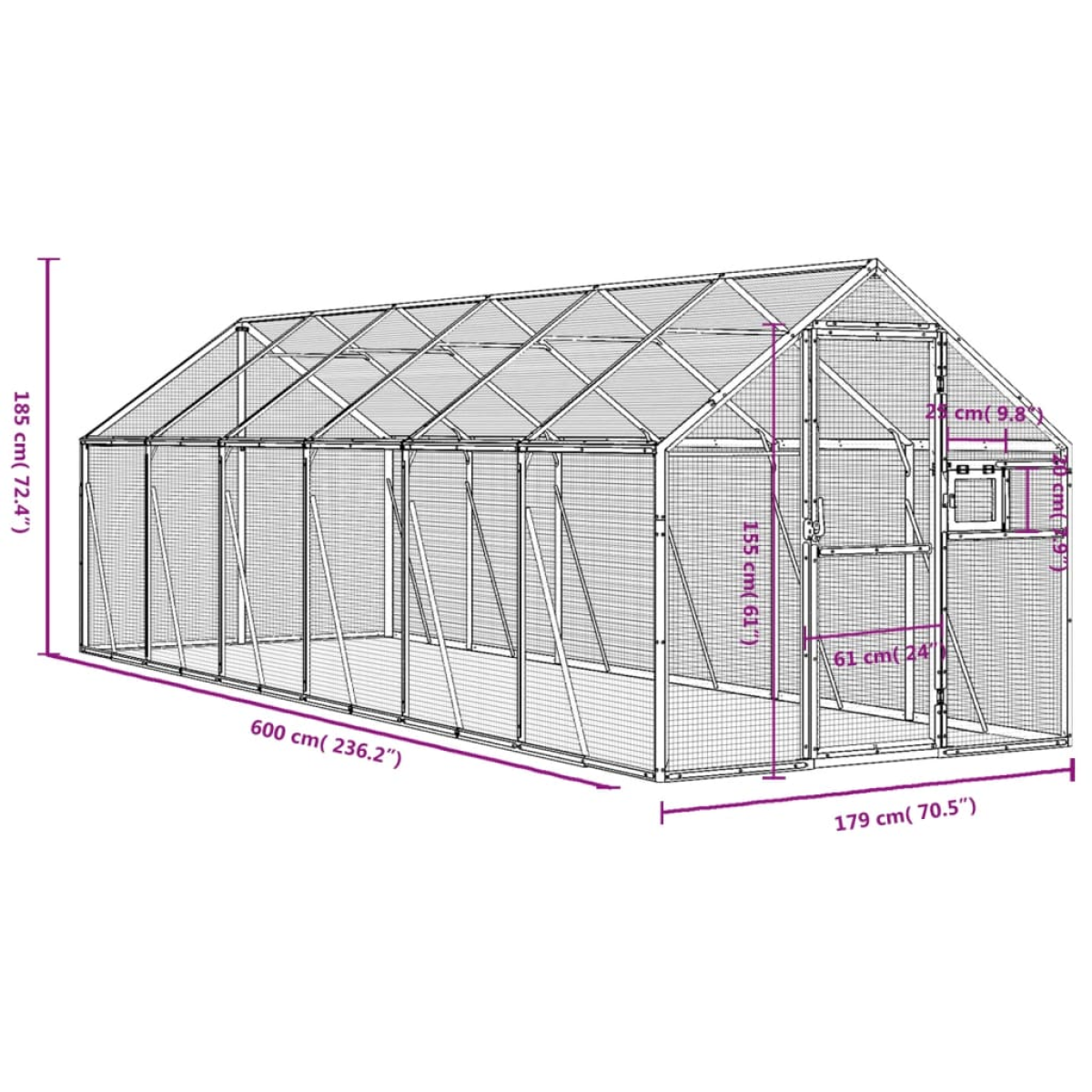 This aviary provides a cosy and comfortable place for your birds to fly and play safely. Sturdy frame: Aluminium metal is lightweight and strong. It's resistant to corrosion with a self-protecting oxide layer. Thanks to the sturdy aluminium construction, this bird aviary is built to last.Wire mesh gird: The budgie cage is equipped with wire mesh grids that prevent mischief and unexpected accidents. In addition, they also allow you to observe your birds daily and guarantee your birds a wide field of view and enough fresh air.Ample activity room: The parrot cage provides your birds with ample activity room to walk around, play and fly around with ease. Besides, it is also suitable for other small animals such as rabbits, ducks, chickens, geese, etc.Lockable door and window: The hinged door with a lockable latch system of the large bird cage ensures extra security and safety for your birds. The large parrot cage also has a lockable window for easy feeding.