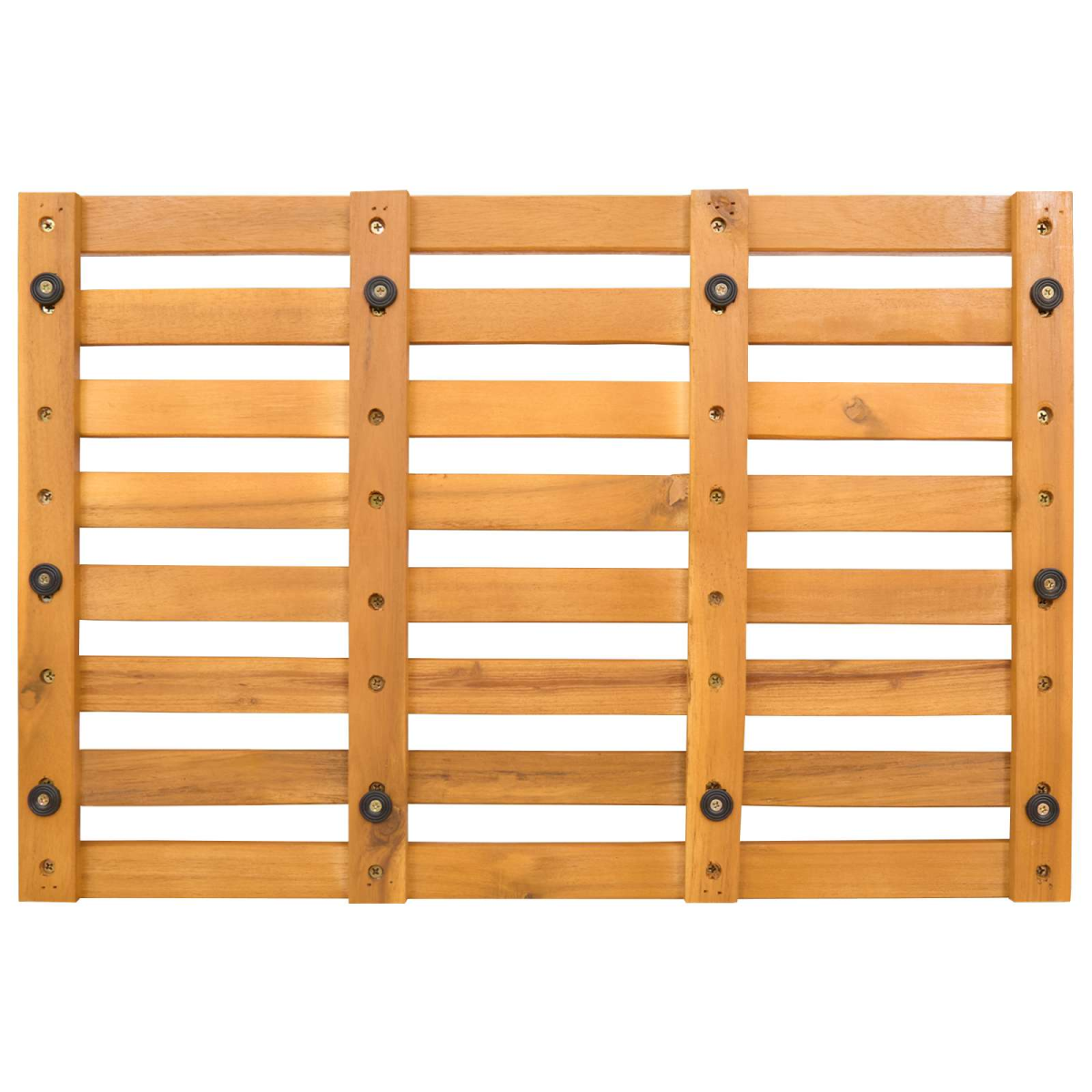 This Wooden Bath Mat is a stylish addition to any bathroom, combining function and aesthetics in perfect harmony. Crafted with a smooth, oiled wooden finish, this bath mat not only enhances bathroom decor but provides a warm, earthy feel underfoot. Ideal for users who appreciate minimalist, natural designs, this mat seamlessly integrates with any bathroom style, offering a unique blend of utility and elegance. Its plain, brown hue exudes simplicity, making it an easy fit for various interior themes, while its tactile surface enhances both functionality and comfort, suitable for everyone from individuals to families. Natural Wood Material This bath mat is crafted from solid wood, providing a natural aesthetic that complements various bathroom styles. The wood offers a warm feel and its natural grain brings a touch of nature into the space, enhancing the overall experience. Water Resistance Engineered to withstand moisture, this mat is an ideal choice for bathrooms. Its water-resistant properties ensure longevity and repeated use without warping, maintaining its smooth appearance and functional integrity over time. Ventilated Design The mat's ventilated design enhances airflow, facilitating quicker drying and preventing moisture build-up. This design is especially beneficial in reducing mildew growth, contributing to a cleaner and more hygienic bathroom environment. Non-Slip Design Strategically designed to offer a stable and secure surface, this mat minimizes slips and falls. Its non-slip backing guarantees it stays in place even on smooth surfaces, providing peace of mind with every step. Low Maintenance Caring for this bath mat is effortless. Simply wipe with a damp cloth to keep it clean. Avoid using harsh chemicals and excessive scrubbing to preserve its oiled finish, ensuring it remains a functional and appealing part of your bathroom decor.