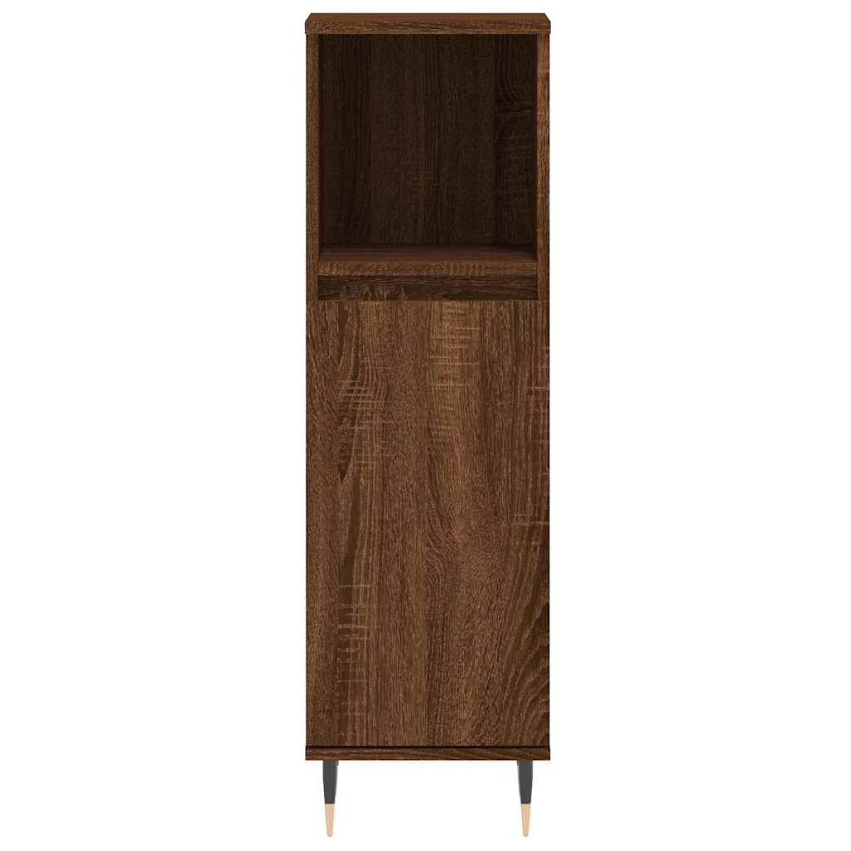 This bathroom cabinet is meant to be a great addition to your bathroom, giving it a tidy and striking appearance! Durable material: The engineered wood is of exceptional quality with smooth surface and also features strength, stability, and resistance to moisture.Ample storage space: The bathroom furniture has 2 compartments with door and 1 open shelf, offering various storage options and extra space to store items in your bathroom.Flexible door installation: You can install the door either on the left or right side based on your own needs.Iron feet: The iron feet add an industrial style to your interior while ensuring the stability of the bathroom storage cabinet. Warning:To prevent it being overturned, this product must be used with the provided wall attachment device.