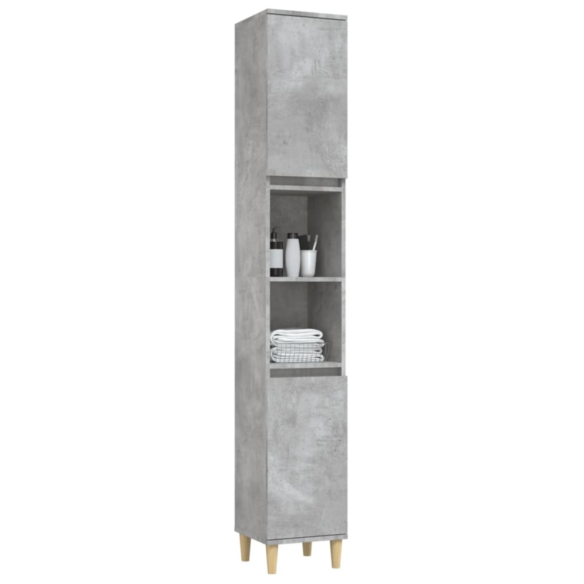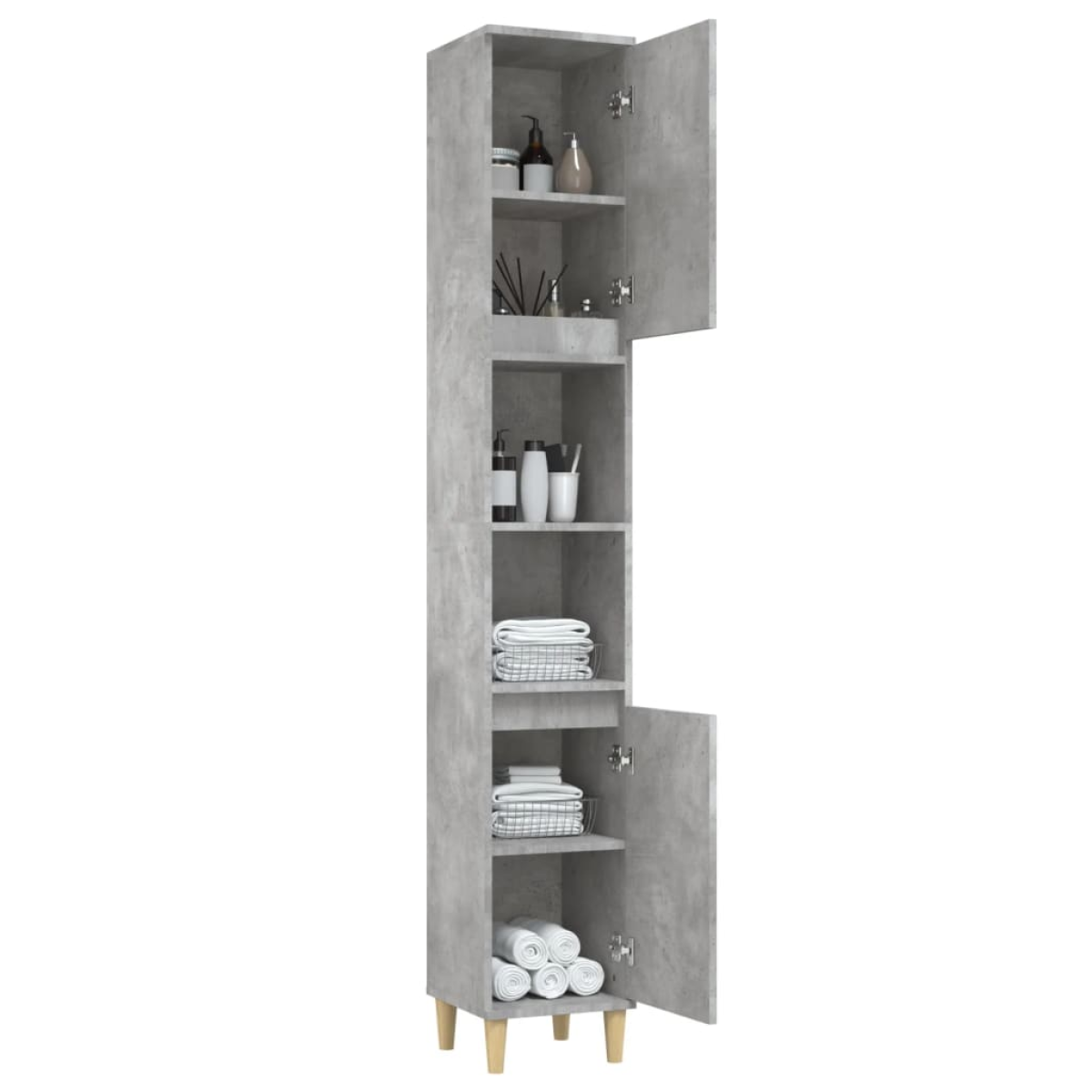 This bathroom cabinet is meant to be a great addition to your bathroom, giving it a tidy and striking appearance! Durable material: The engineered wood is of exceptional quality with smooth surface and also features strength, stability, and resistance to moisture.Ample storage space: The bathroom furniture has 6 compartments and 2 doors, offering various storage options and extra space to store items in your bathroom.Wooden feet: The solid eucalyptus wood feet give the bathroom cupboard a natural and pleasant look while ensuring stability.Easy-to-clean surface: The bathroom unit is easy to clean with a damp cloth. Warning:To prevent it being overturned, this product must be used with the provided wall attachment device. Good to know:Screws and plugs for inside the wall are not included. We advise to find and use screws and plugs suitable specifically for your walls. If you're not sure, you can consult with a professional. Please read and follow each step of the instructions.To make assembly as easy as possible, each product is delivered with a manual.