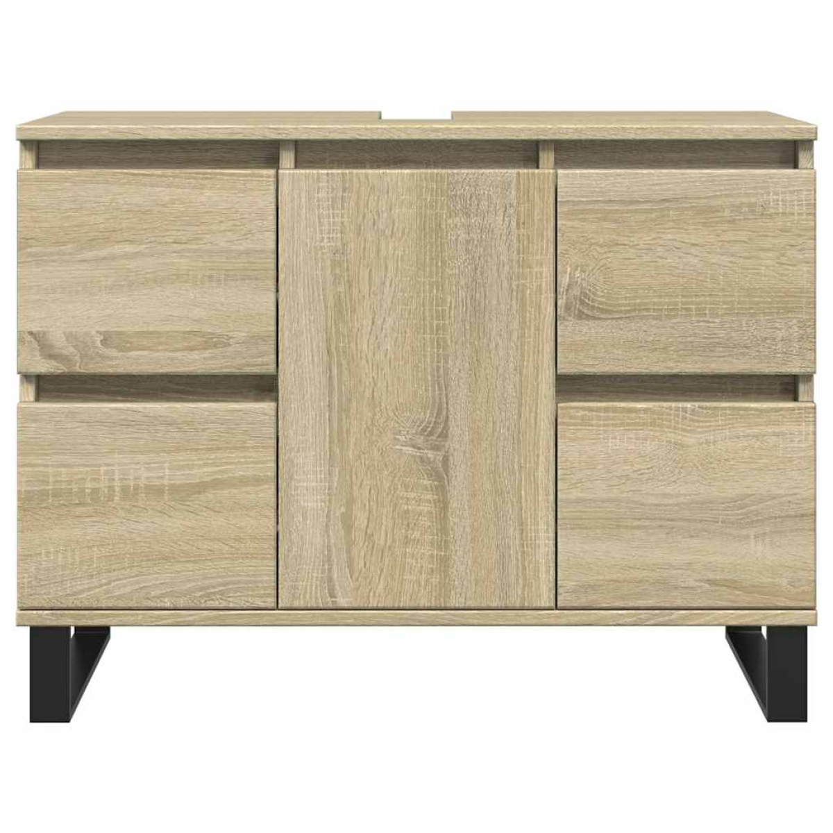 This bathroom cabinet is meant to be a great addition to your bathroom, giving it a tidy and striking appearance! Durable material: The engineered wood is of exceptional quality with smooth surface and also features strength, stability, and resistance to moisture.Ample storage space: The bathroom furniture has 4 drawers and 1 door, providing ample space to easily accommodate your essential toiletries and bath items such as soaps, shampoo, toothpaste, etc.Practical door: Keep your space clutter-free by hiding small essentials behind the door of this bathroom cupboard. And the door can be assembled on the left or right as per your preference.Iron feet: The iron feet add an industrial style to your interior while ensuring the stability of the bathroom storage cabinet. Warning:To prevent it from tipping over, this product must be used with the provided wall attachment device.