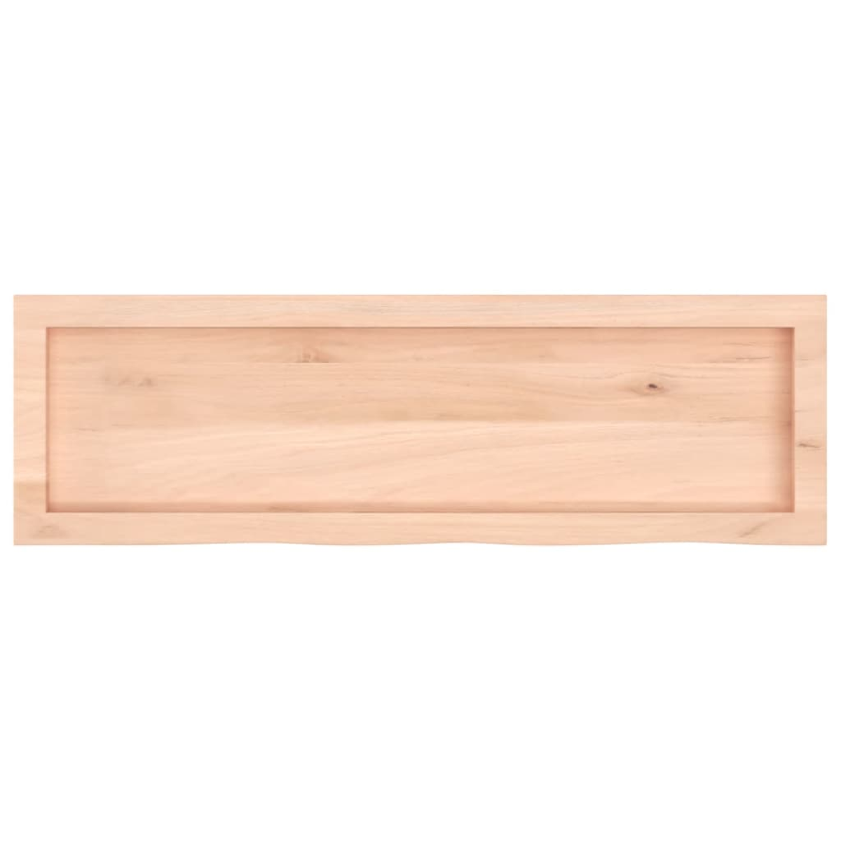 Are you planning to renovate your countertops at home? This wooden bathroom countertop is a perfect choice! Durable construction: This bathroom worktop is made of solid oak wood, which is a beautiful natural material. Oak wood has a medium brown colour and a dense grain, contributing to its unique look.Versatile applications: Besides a bathroom vanity top, this wooden countertop can be combined with different bases according to your needs. It can be used as a shelf, cabinet top, desk top, table top etc.Untreated surface: As the bathroom top is crafted from solid oak wood with no finish, you can keep its natural colour but also can paint or lacquer it as per your preference.Handmade with live edge: This bathroom vanity countertop is handmade with a live edge. Due to that the knots, cracks, slightly curved shapes, and colour tones are part of the oak wood, every piece of oak countertop has its own unique character to display. The delivery is random. Good to know:As a natural product, wood may show knots and imperfections that we fill with black fillings to ensure a smooth appearance.
