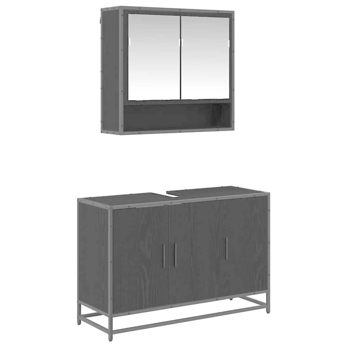 This Modern Bathroom Furniture Set is an elegant addition that combines form and function, enhancing your daily routine with its sleek design and practicality. The set includes both a mirror cabinet and a sink cabinet, both crafted from engineered wood that integrates seamlessly into contemporary interiors. This furniture set not only offers a refined storage solution but also brings an aura of sophistication to your bathroom. With its modern style, characterized by clean lines and simplicity, this set is perfect for those who appreciate minimalist aesthetics in their living spaces. Imagine the ease of access to your essentials, neatly organized and hidden behind flush doors, making your morning and evening routines blissfully efficient. Premium Materials: Constructed with engineered wood, this set boasts durability and a timeless appearance. Engineered wood is celebrated for its stability and resistance to changes in humidity, ensuring long-term satisfaction. Its smooth surface is both visually appealing and easy to maintain, offering a blend of practicality and style. Functional Components: The set includes a spacious mirror cabinet and a functional sink cabinet designed with modern needs in mind. Flush doors and ample shelving cater to diverse storage needs, while the wall-mounted design maximizes floor space, giving a sense of openness and space efficiency in smaller bathrooms. Modern Style and Design: With its clean lines and minimalist ornamentation, this furniture set complements a wide array of bathroom decors. Its modern aesthetic is enhanced by smooth surfaces and understated black metal bar handles, creating a cohesive and balanced look. Versatile Usage: Perfect for bathrooms seeking a contemporary update without sacrificing practicality. Ideal for both homeowners wanting a personal retreat and rental properties aiming to provide style and function to tenants. Care &Maintenance: Ensure your set remains in pristine condition with minimal effort. Simply wipe surfaces with a damp cloth to clean, and avoid harsh chemicals to maintain its finish. Such straightforward care ensures long-lasting use and beauty.