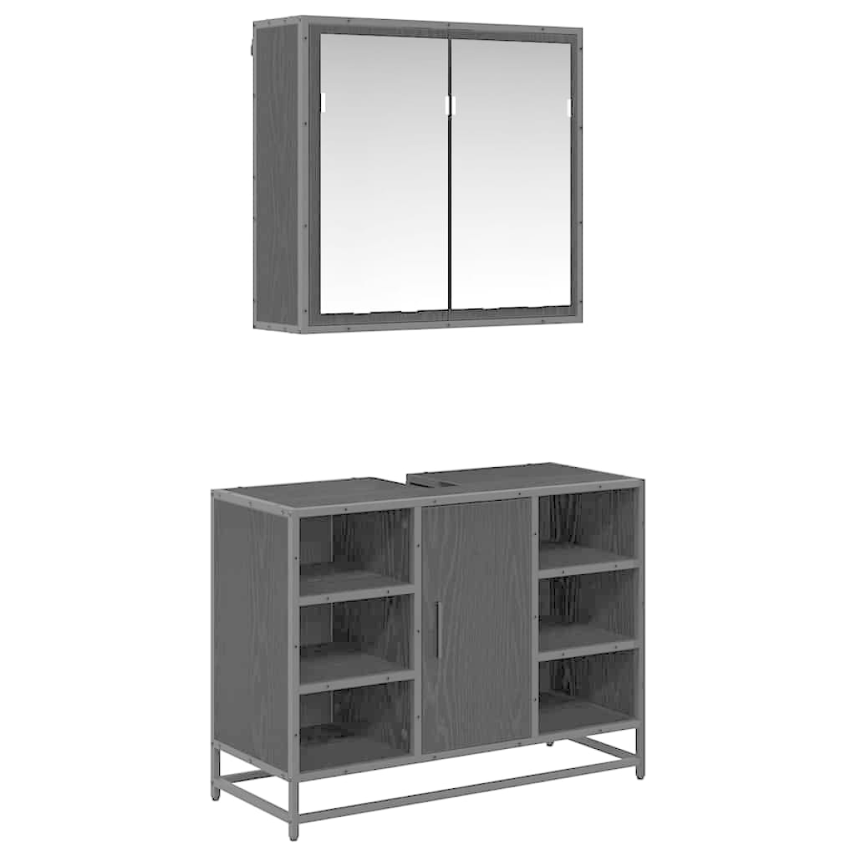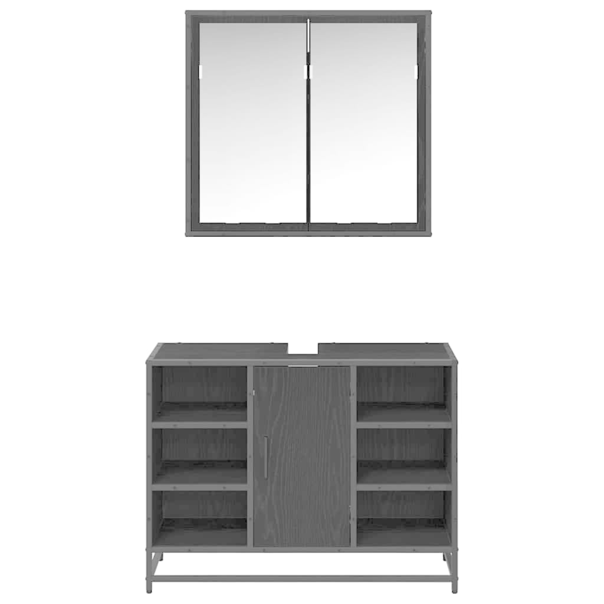 This Wooden Bathroom Furniture Set embodies the epitome of modern elegance while optimizing space within your bathroom. With its simple, streamlined design, this furniture set features a seamless blending of engineered wood and metal, ensuring not only a contemporary and chic look, but also enduring functionality that can accommodate a wide range of interior styles. The set renders a minimalist appeal with its rectangular shape, offering a practical solution for those who desire both style and practicality in their home's interior without sacrificing aesthetics. Premium Materials: Crafted with high-grade engineered wood, this bathroom set blends strength and elegance. The engineered wood ensures durability and a refined appearance that withstands moisture and everyday use. The robust metal frame adds extra stability and a touch of modern charm, allowing the set to complement various bathroom styles effectively. Functional Components: The bathroom furniture set includes a wall-mounted mirror cabinet and a spacious sink cabinet. The mirror utilizes a plane surface for a true-to-life reflection, enhancing grooming and decor. Bar-type iron handles and flush doors with a smooth surface further highlight the functionality and sleek design of this set. Designed for Space Efficiency: By being wall-mounted, the set offers a practical yet elegant solution to save valuable floor space. The square metal legs and mounting design add to the space-saving appeal, enabling easy integration into various bathroom sizes while offering a streamlined look. Versatile Use: While designed for bathrooms, the elegant and neutral design allows the furniture set to be versatile for different environments, providing ample storage capacity with its compartmentalized compartments, improving organizational efficiency. Care & Maintenance: The furniture set is easy to maintain. Simply wipe with a damp cloth for effortless cleaning, preserving the unit's pristine condition. The scratch-resistant surfaces further protect against daily wear and tear, ensuring long-term usability.