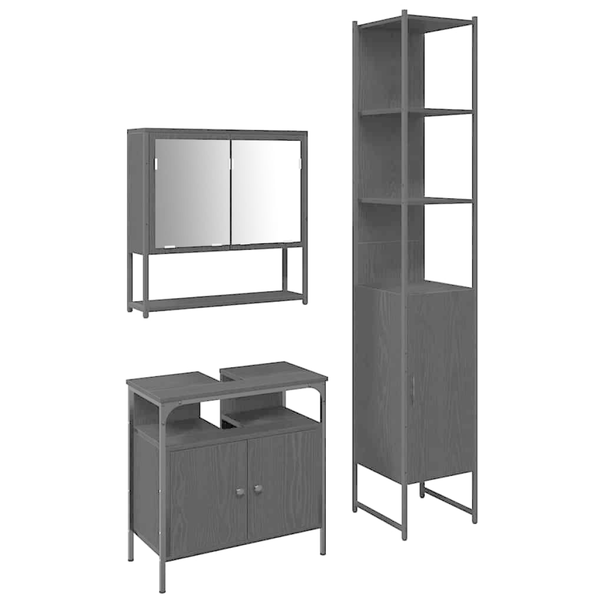 This Rectangular Bathroom Furniture Set brings together practicality and style, turning your bathroom into a chic space. With its sleek design and laid-back feel, it's great for anyone who loves a minimalist touch. This set works well in all types of bathroom layouts, giving you both good looks and handy storage options. Top-Notch Materials: This set is made from engineered wood, making it resistant to stains and scratches. It's sturdy enough to handle everyday use, plus the steel bits give it a modern twist and boost its strength. All the Bits You Need: The bathroom set comes with a mirror cabinet, sink cabinet, and bathroom cabinet. Each piece is made for easy storage while looking good in your bathroom. The mirror is perfect for seeing yourself while you get ready, and the cabinets help keep things tidy. Stylish Touches: With a modern vibe and clean lines, this set enhances any bathroom's style. The black legs and frame add a strong look, while the durable doors and handles make everything easy to use. Best for Any Indoor Bathroom: This set is ideal for indoor bathroom spaces, fitting in with modern layouts to make the most of smaller areas. Its great design and tough build mean it's a flexible and useful choice for any home. Easy Care: To keep it looking good, avoid over-scrubbing the surfaces. Dust and clean it regularly with a soft, dry cloth, so it stays in top shape and lasts for years to come.