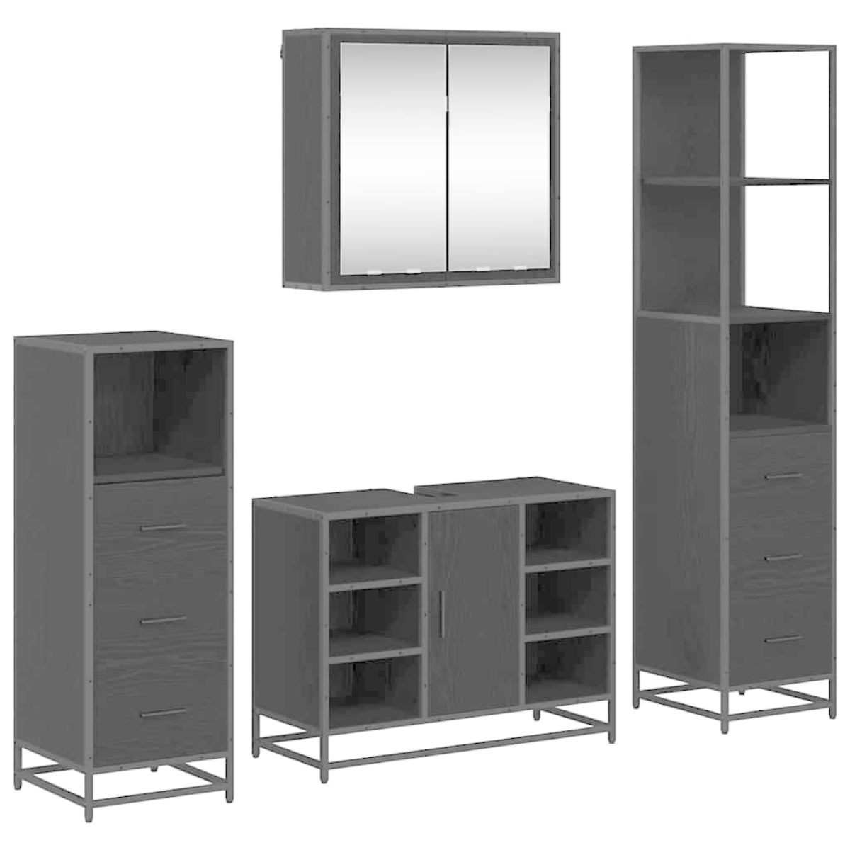 This Wooden Bathroom Furniture Set is the perfect mix of modern style and practicality, made to lift any contemporary bathroom. Its clean lines and simple profile really fit with your minimalist decor, making everything look seamless. Imagine how the blend of industrial materials and fine craftsmanship gives it a distinct look, which will surely enhance your bathroom’s vibe with understated elegance. Modern Aesthetics: This furniture set shows off a sleek design that’s all about simplicity and function. The straightforward lines make it a fab fit for any modern bathroom, so it’ll work well with lots of decor styles. Durable Build: Built from engineered wood and metal, this set is all about strength and reliability. The engineered wood is tough against warping and wear, while the metal bits give it sturdy support for long-lasting use. Multiple Storage Solutions: With loads of storage options like a mirror cabinet, sink cabinet, and two extra bathroom cabinets, this set keeps all your grooming stuff and toiletries organised just right. The flush doors and smooth surfaces make accessing everything a breeze, helping you keep it tidy. Wall-Mounted Installation: This wall-mounted setup saves space, keeping your bathroom looking neat and tidy. The square metal legs add support and fit in with the sleek look while keeping everything stable. Convenient Maintenance: Keeping it clean is dead easy—just wipe it down with a damp cloth, and it’ll look as good as new without any hassle.