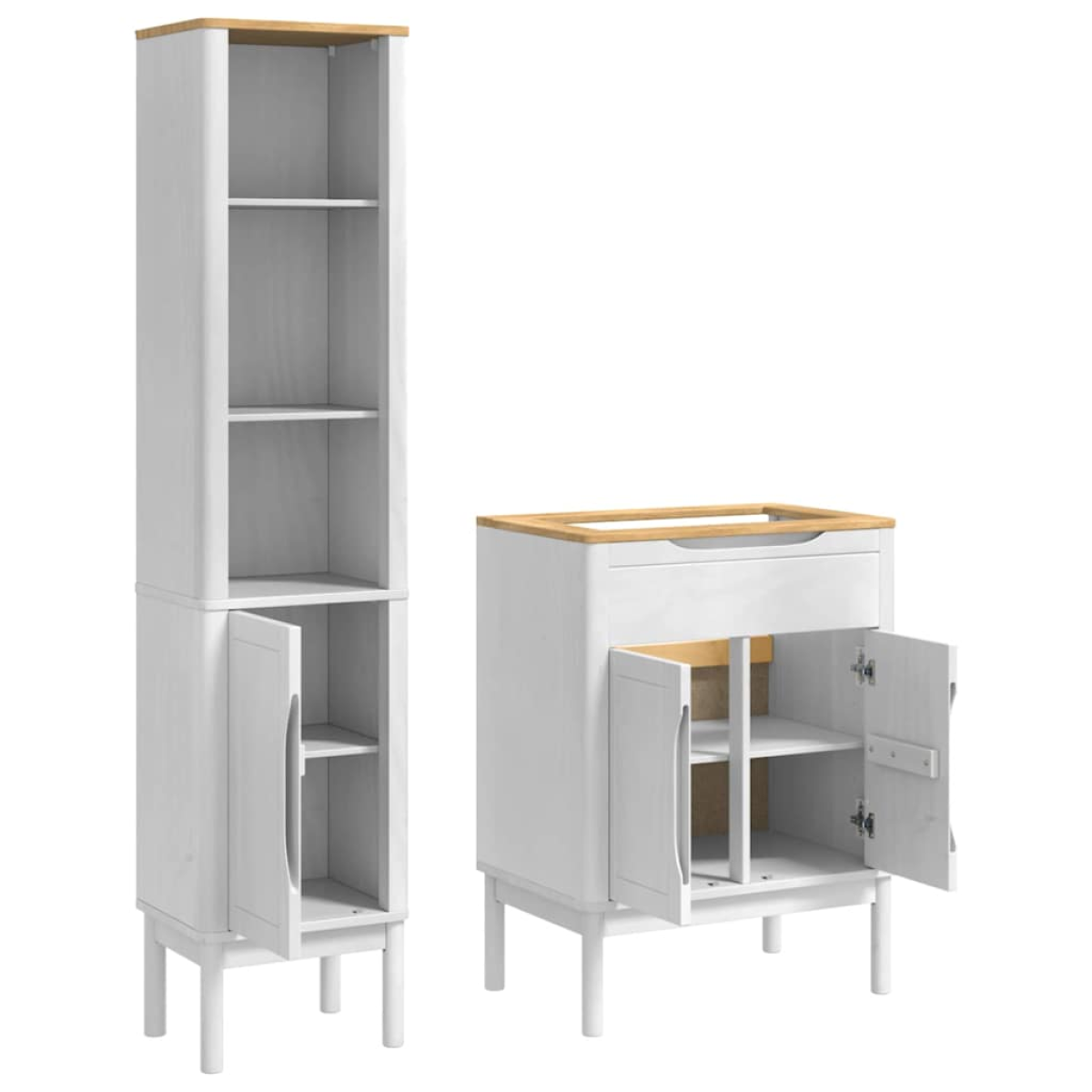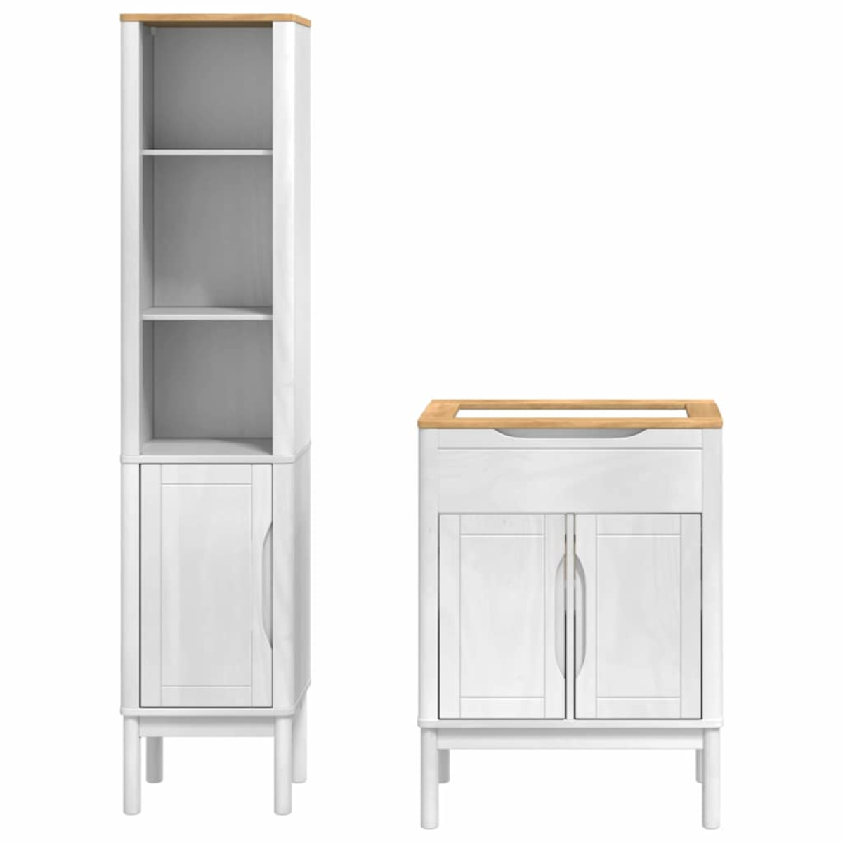 This highly functional bathroom furniture set combines minimalist style with practicality, offering ample storage and a sleek design. Perfect for modern bathrooms, it provides built-in shelves and wall-mounted efficiency, creating a seamless look that fits various décor styles. It's an ideal choice for anyone looking to add both aesthetic appeal and functionality to their bathroom space. Materials: Constructed primarily of wood, this bathroom furniture set aligns with minimalist principles, featuring an opaque, smooth surface. The wood material ensures both beauty and functionality, lending the set a visually appealing texture while withstanding everyday use in a busy household. The non-reflective matte finish adds an understated elegance to the bathroom environment, creating a relaxing, private oasis for users. Included Components: The set includes built-in shelves and drawers that provide ample storage space for all your bathroom essentials. The wall-mounted design ensures a streamlined appearance and helps free up floor space, bringing a sense of openness to small or medium-sized bathrooms. With all components included for wall mounting, the assembly process is straightforward, allowing users to enjoy the set shortly after purchase. Features /Function /Design: Emphasizing a minimalist approach, the furniture set provides a clutter-free environment through its sleek design and ample storage features. The combination of built-in drawers and shelves offers users a comprehensive solution for organizing bathroom necessities efficiently. Equipped with additional design features, like square legs and matte-finished frames, the set maintains durability and modernity. Recommended Uses: Ideal for bathrooms that require additional storage without compromising style, this furniture set effortlessly adapts to various personal and family-sized bathroom settings. It optimizes available space while ensuring essential toiletries and linens are always within reach, seamlessly integrating with any existing design aesthetics. Care &Maintenance: To keep the furniture looking pristine and like new, simply wipe the surfaces with a damp cloth regularly. Avoid using harsh chemicals and abrasives to protect the waxed finish and maintain its opaque texture. Securing tall furniture to the wall further provides safety, especially in households with children.